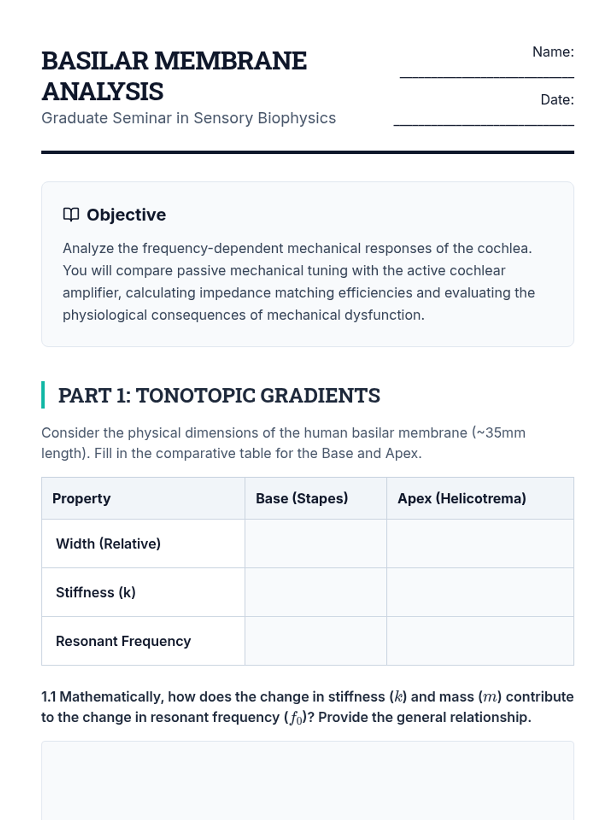 A graduate-level exploration of the biophysics and neural coding of the auditory system. This sequence covers everything from fluid dynamics in the cochlea to central processing and prosthetic engineering.