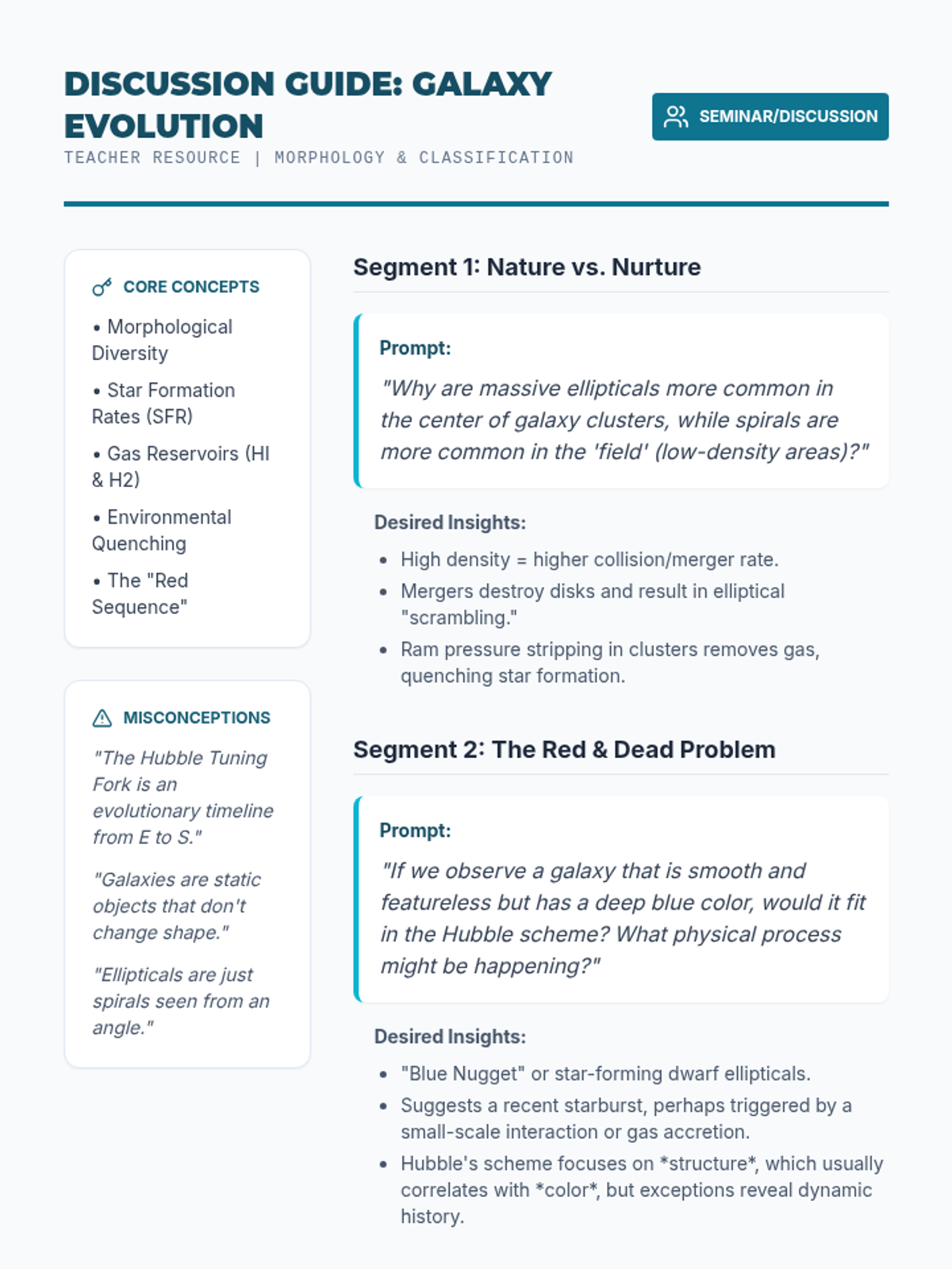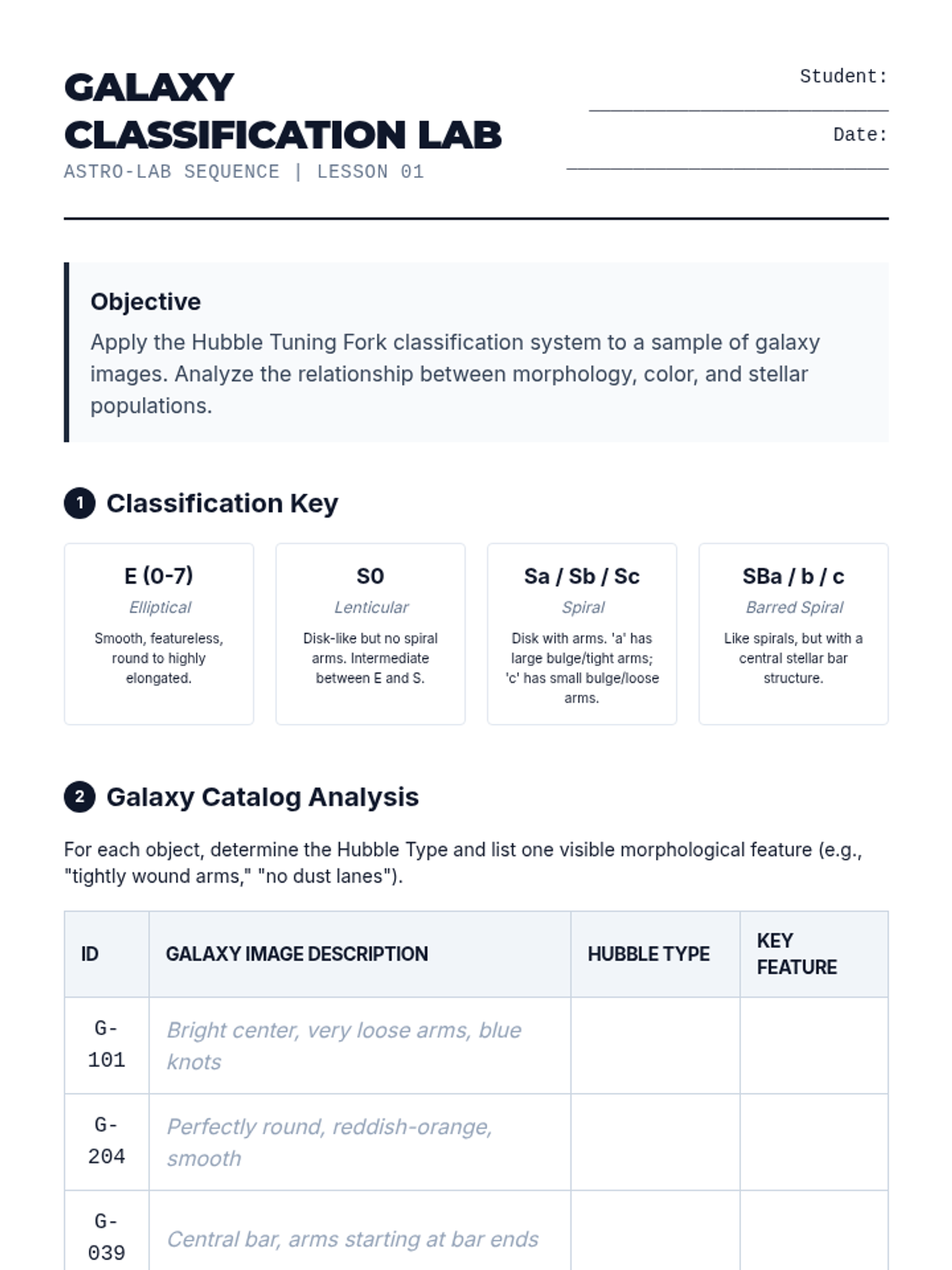 An undergraduate-level investigation into the large-scale structure of the universe, from galactic dynamics to cosmic expansion and the Big Bang. Students use real astrophysical data to model dark matter distributions, calibrate the cosmic distance ladder, and calculate the Hubble constant.