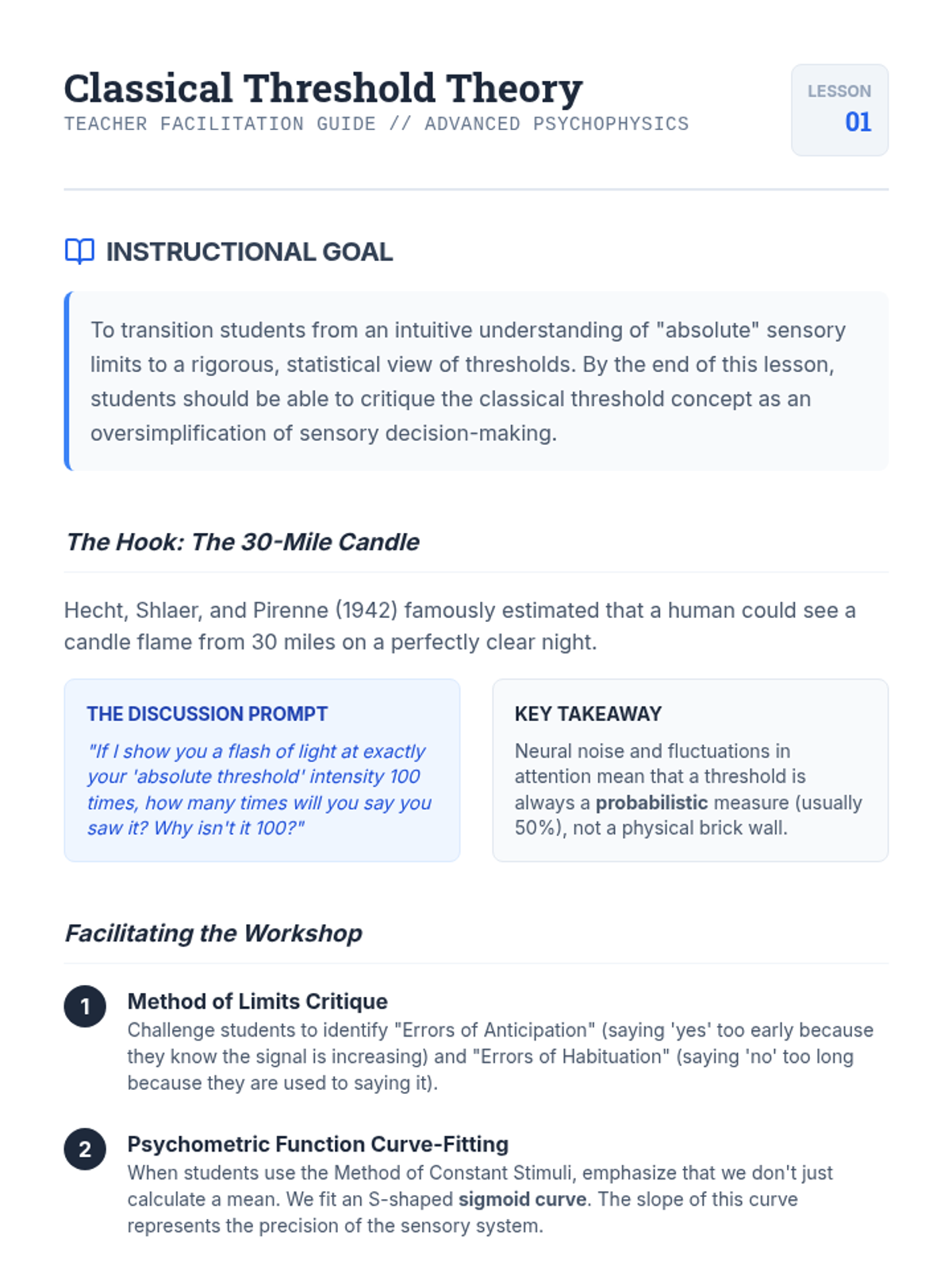 A graduate-level exploration of psychophysical methodology, focusing on the mathematical frameworks of Signal Detection Theory and Bayesian inference in sensory systems. Students will master the calculation of sensitivity and bias, ROC analysis, and threshold measurement techniques.