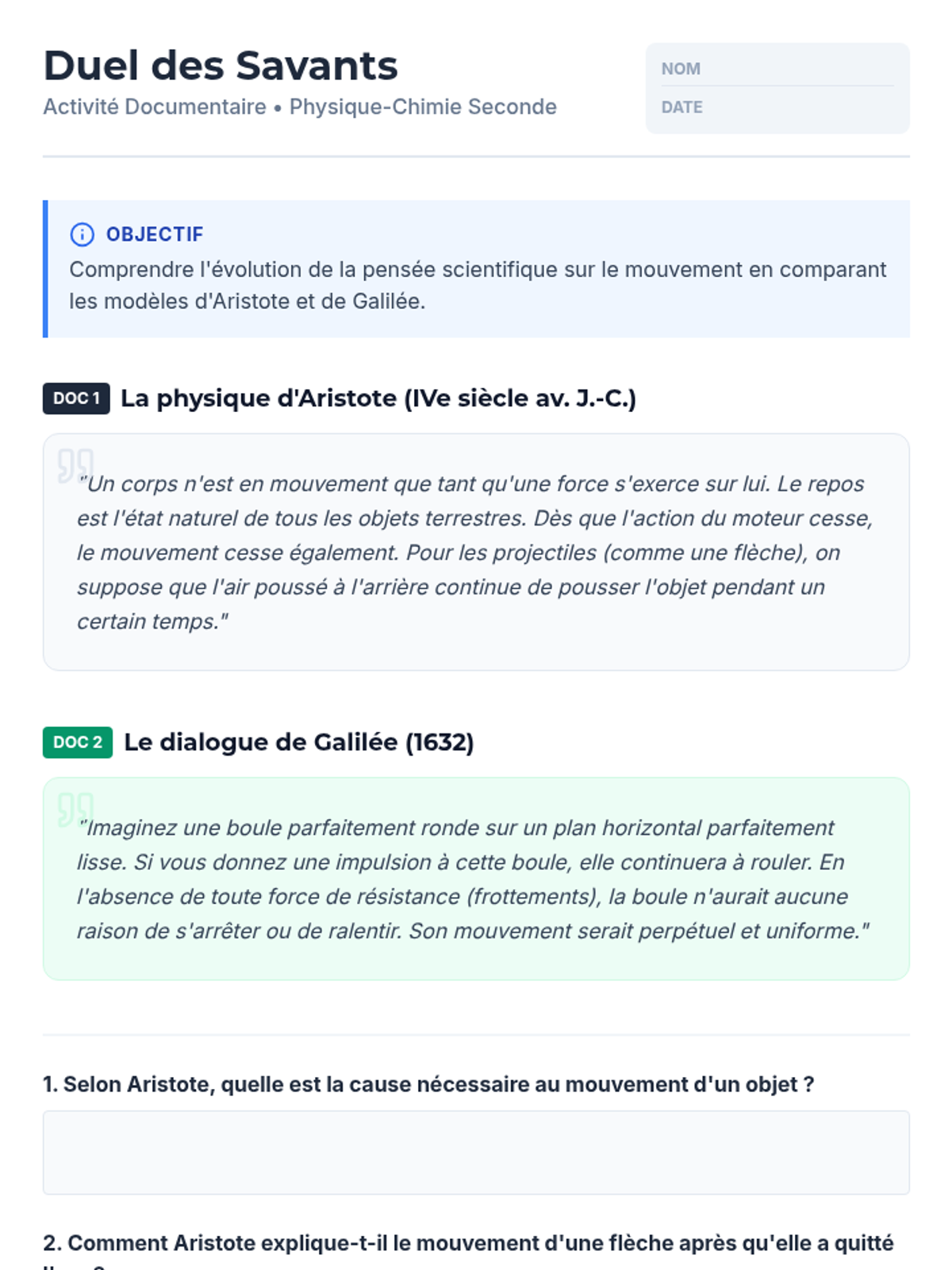 Cette séquence de 4 séances de 45 minutes explore le principe d'inertie pour les élèves de seconde. Elle combine histoire des sciences, simulations numériques et résolution de problèmes pour comprendre la relation entre forces et mouvement.