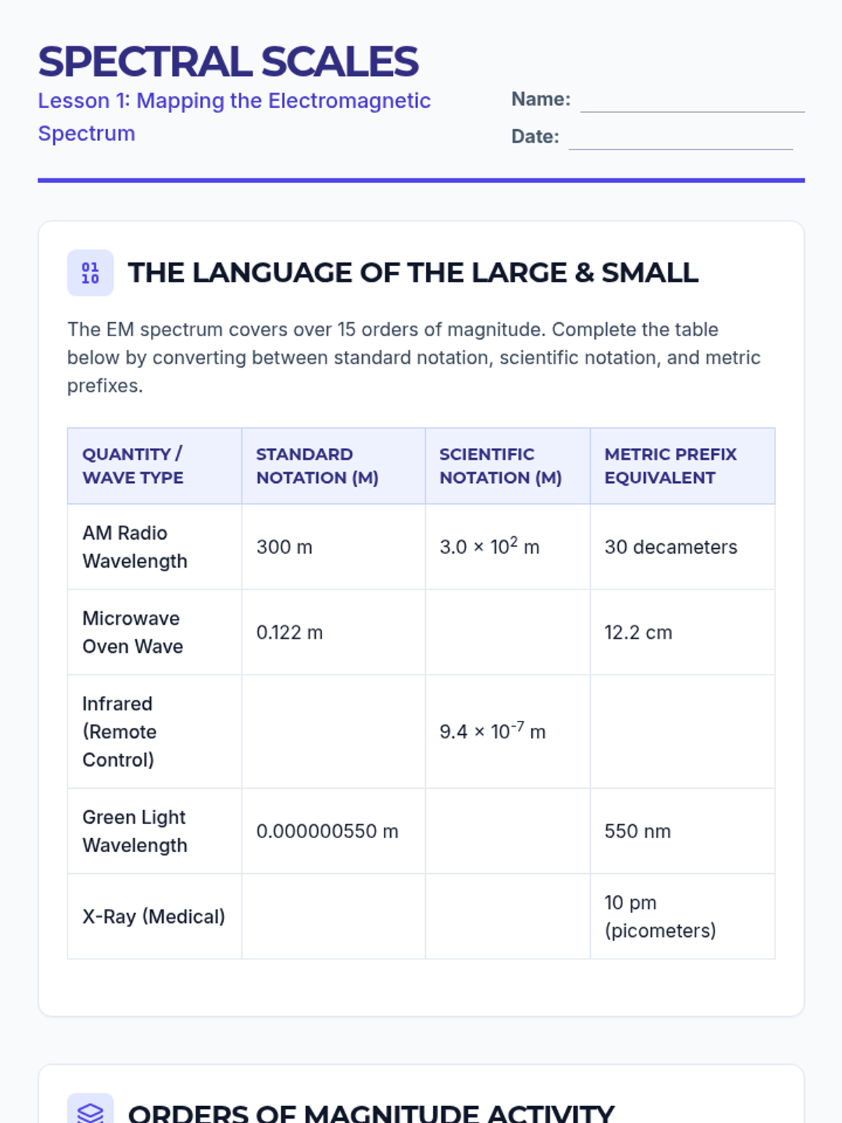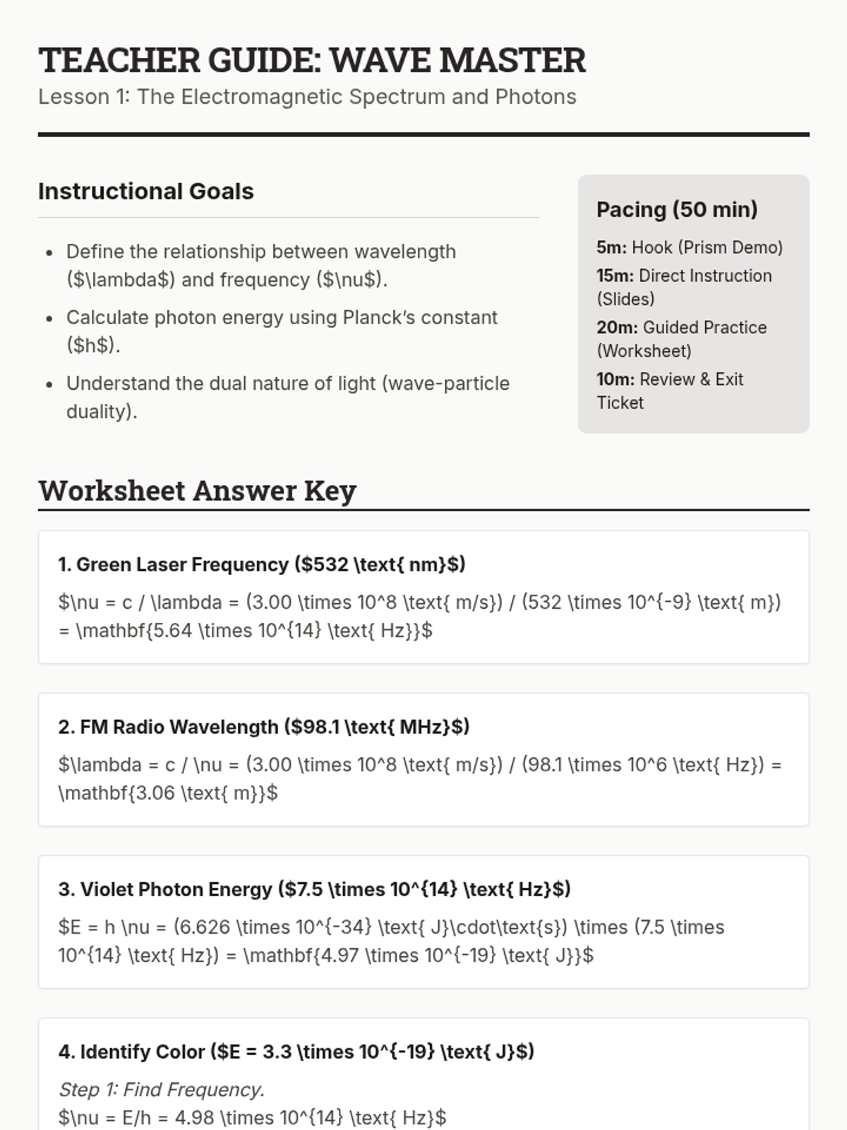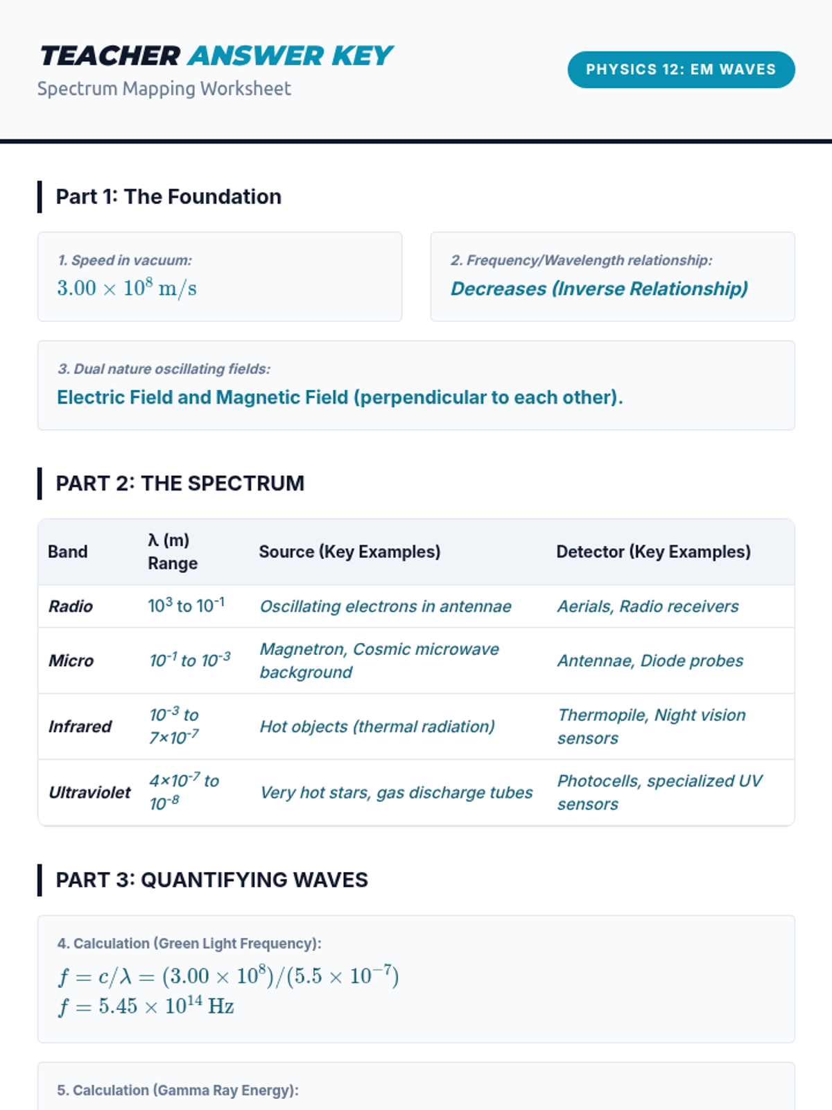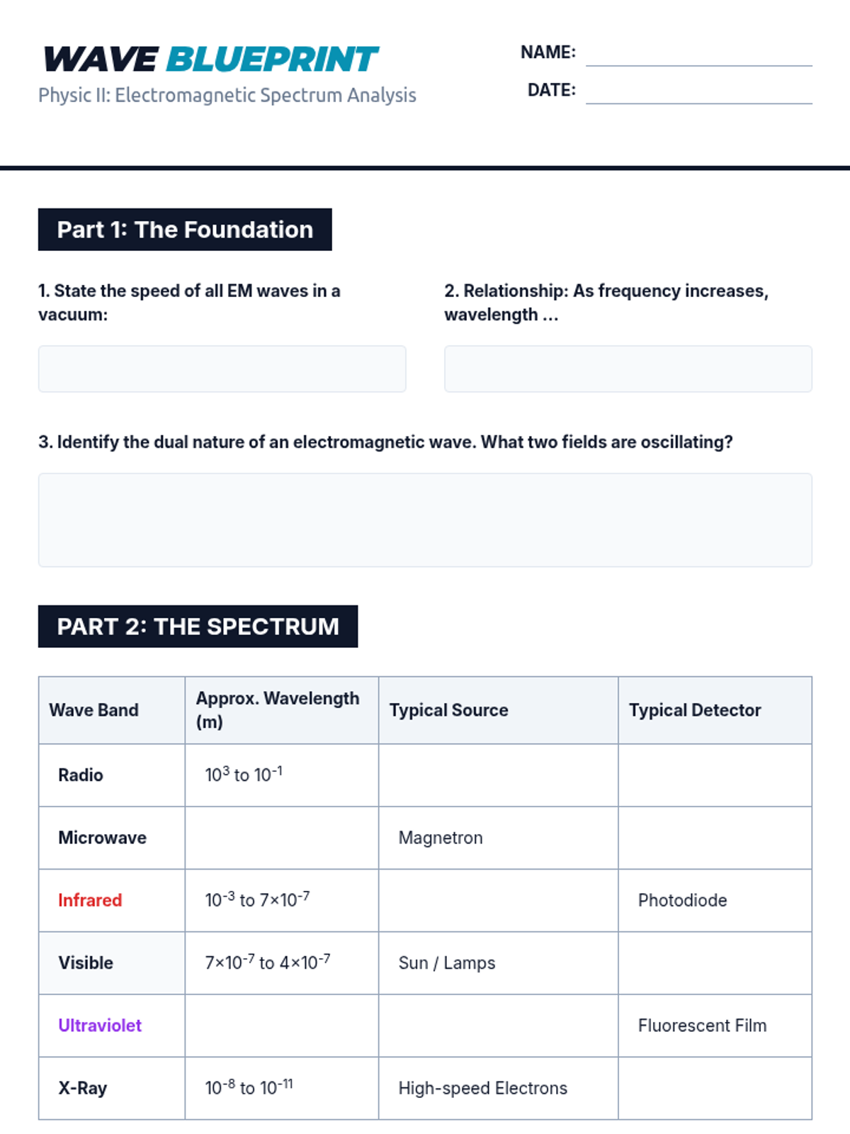 A high-school physics sequence focused on the quantitative analysis of the electromagnetic spectrum. Students master the mathematics of wave relationships, explore spectroscopy and blackbody radiation, and research practical technological applications across different spectral bands.