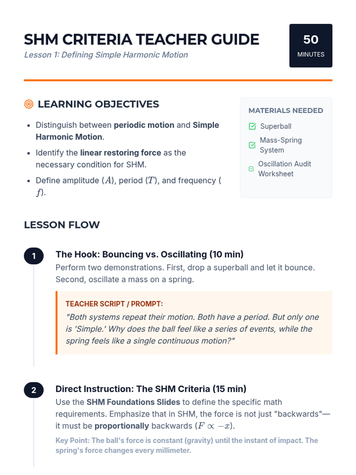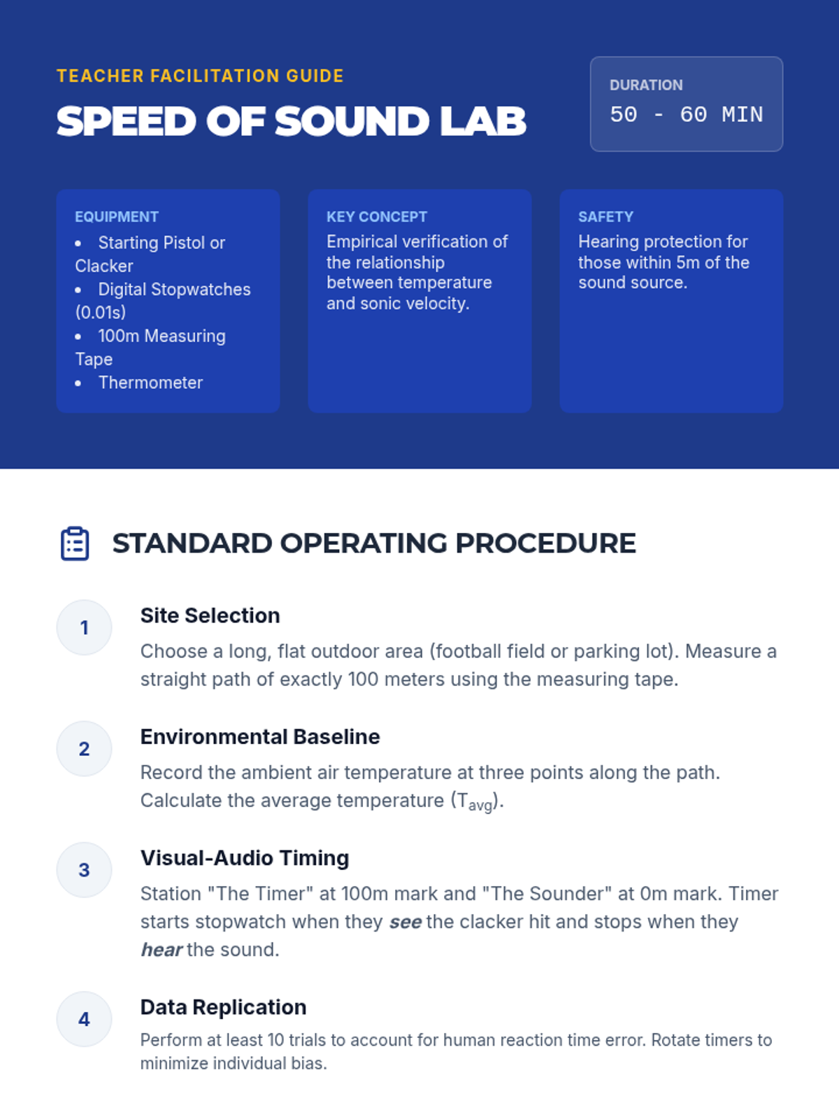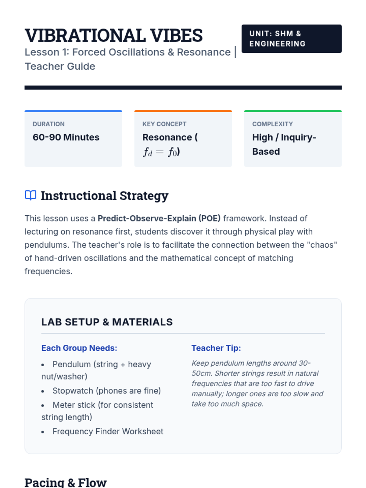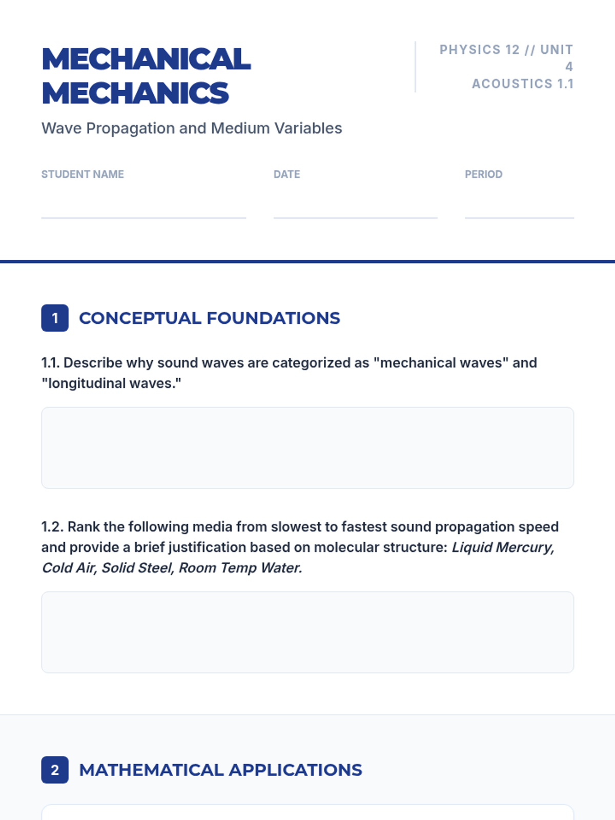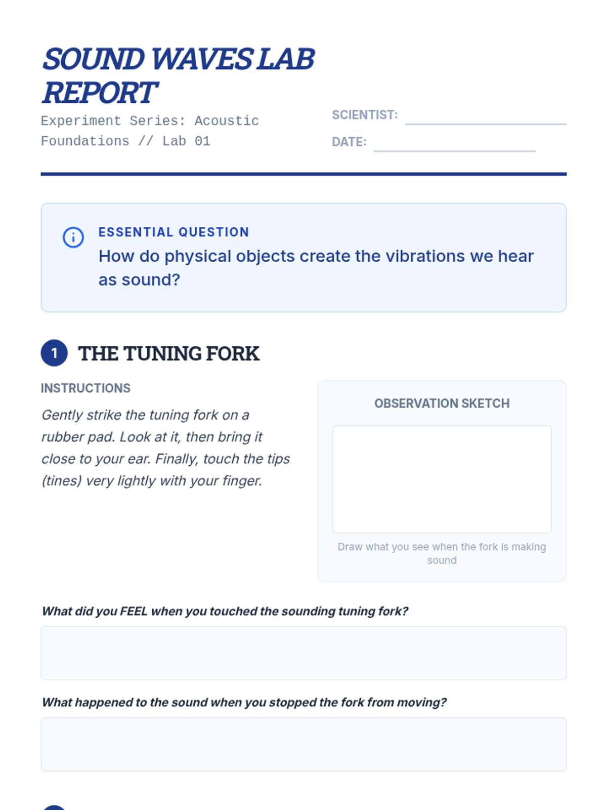 A project-based physics sequence exploring acoustics, resonance, and wave phenomena. Students progress from basic sound propagation to engineering their own acoustic devices, applying principles of harmonics, beats, and the Doppler effect.