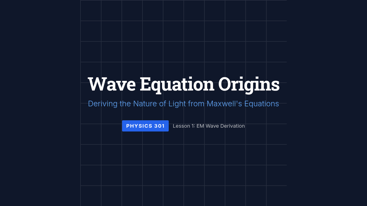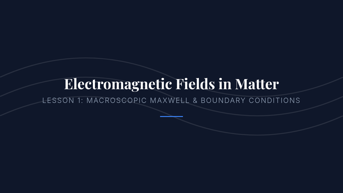 A comprehensive graduate-level sequence exploring how microscopic atomic interactions determine the macroscopic propagation of electromagnetic waves through conductors, dielectrics, and plasmas. This series covers Maxwell's equations in matter, boundary conditions, dispersion models (Drude/Lorentz), Fresnel equations, and ionospheric plasma physics.
