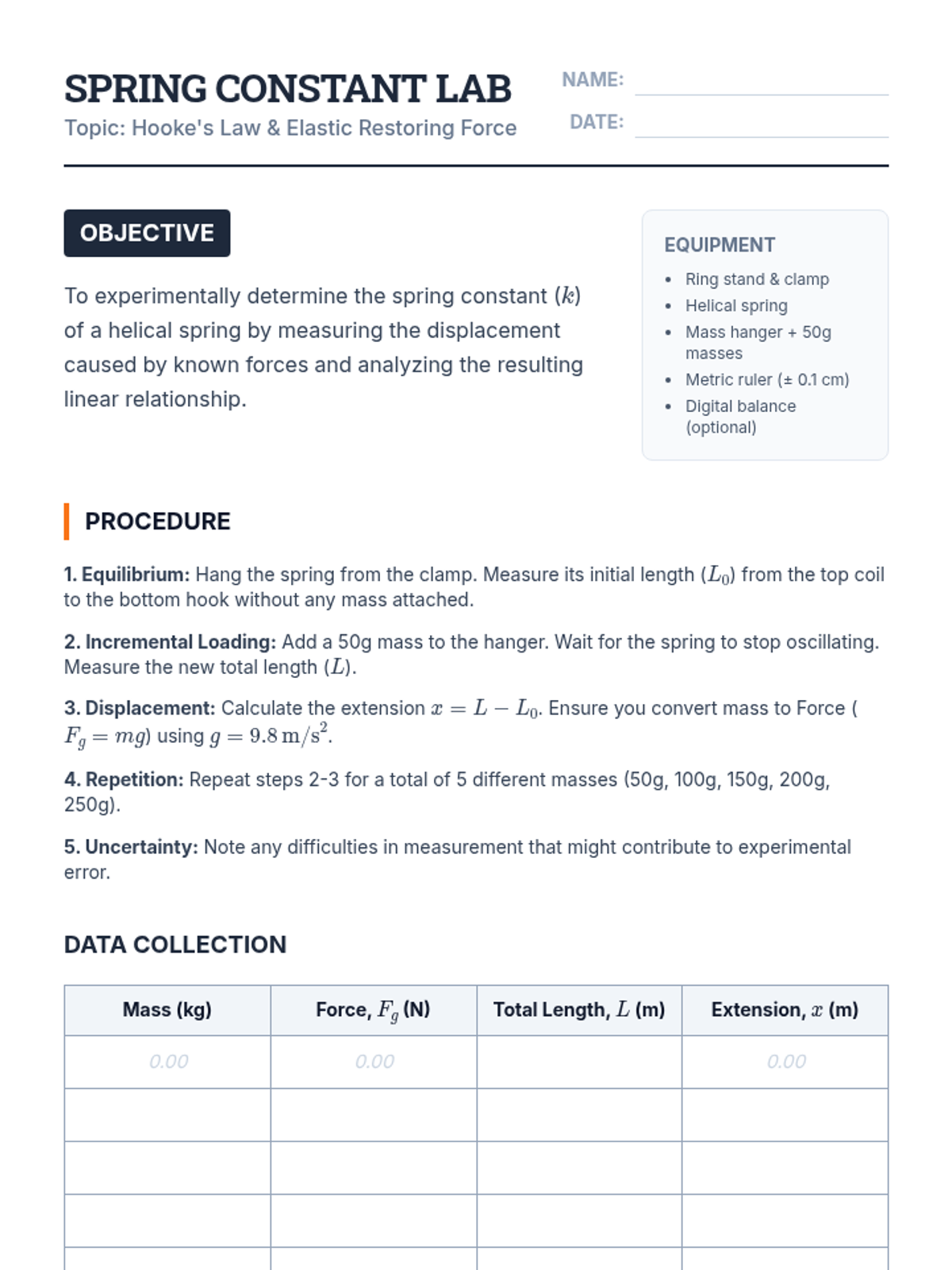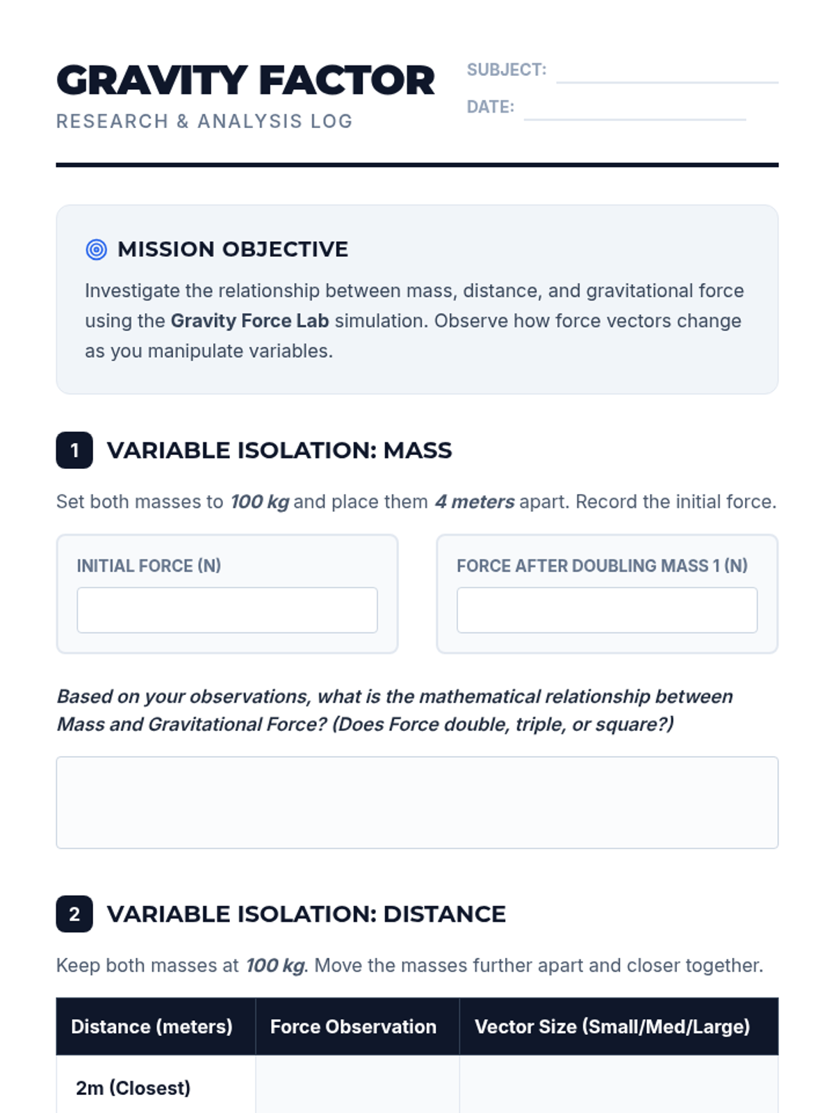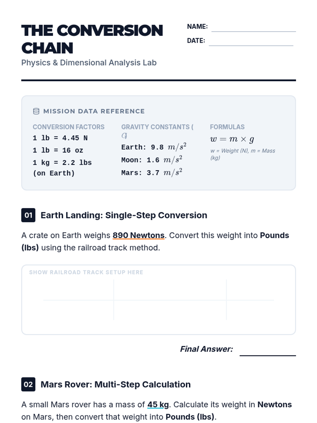 A physics-focused unit exploring the relationship between mass, weight, and force, emphasizing mathematical modeling and unit conversions.