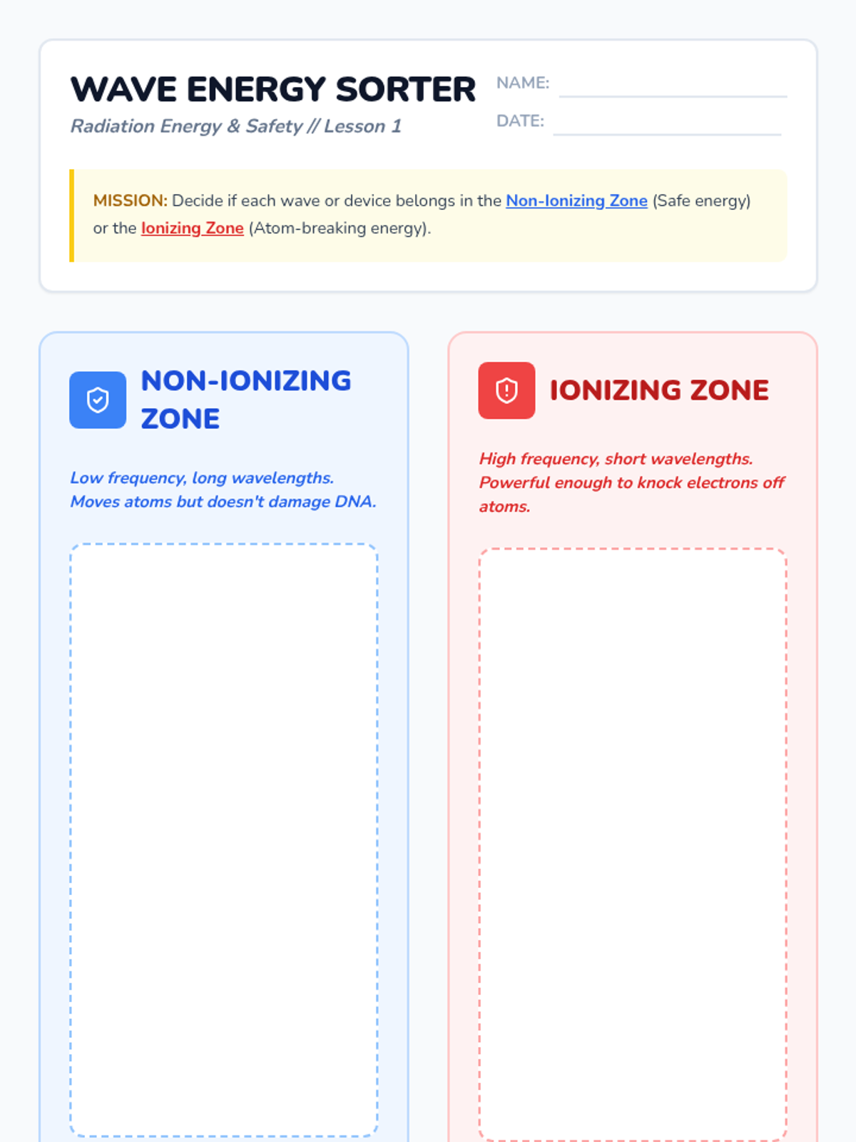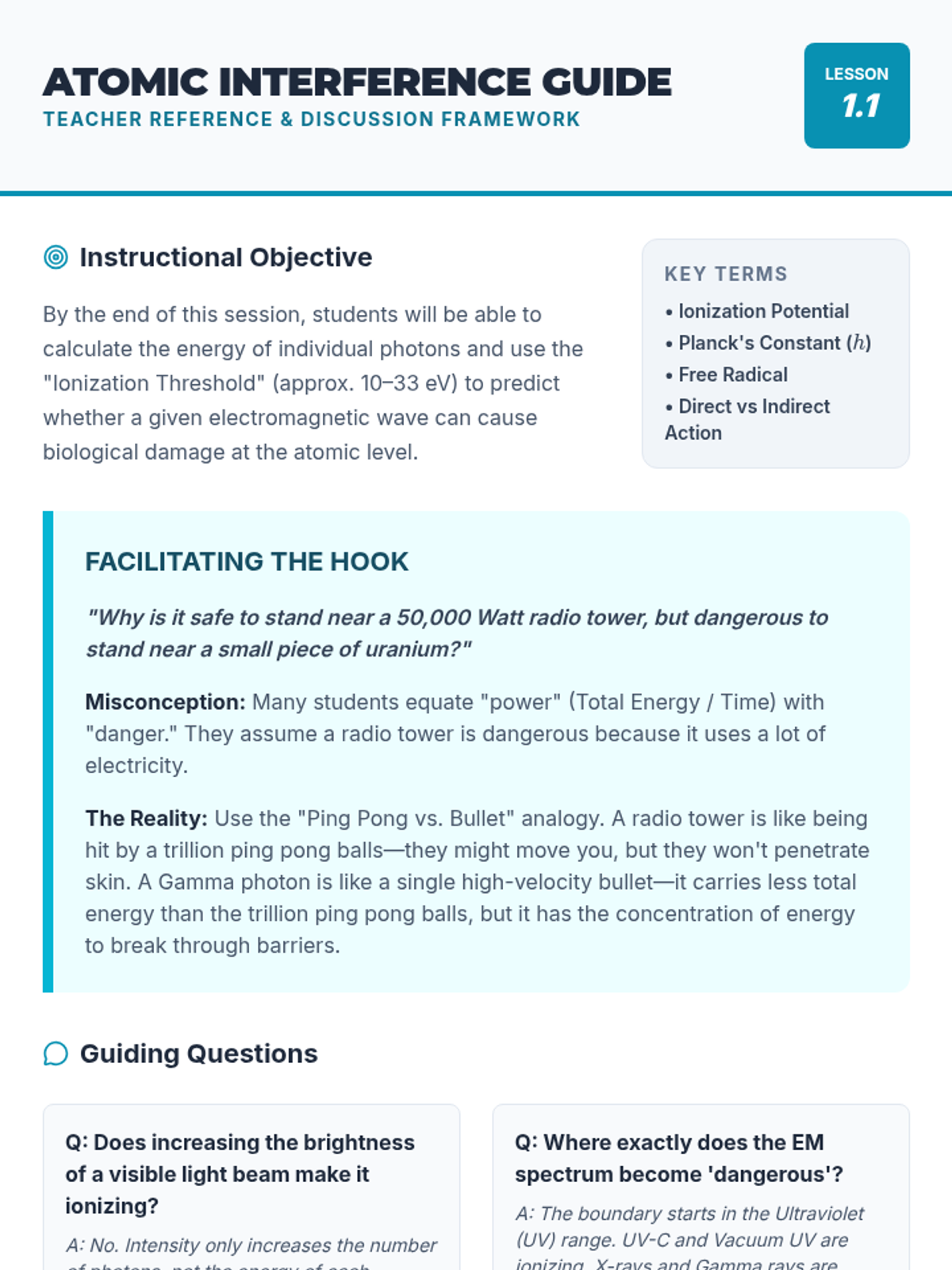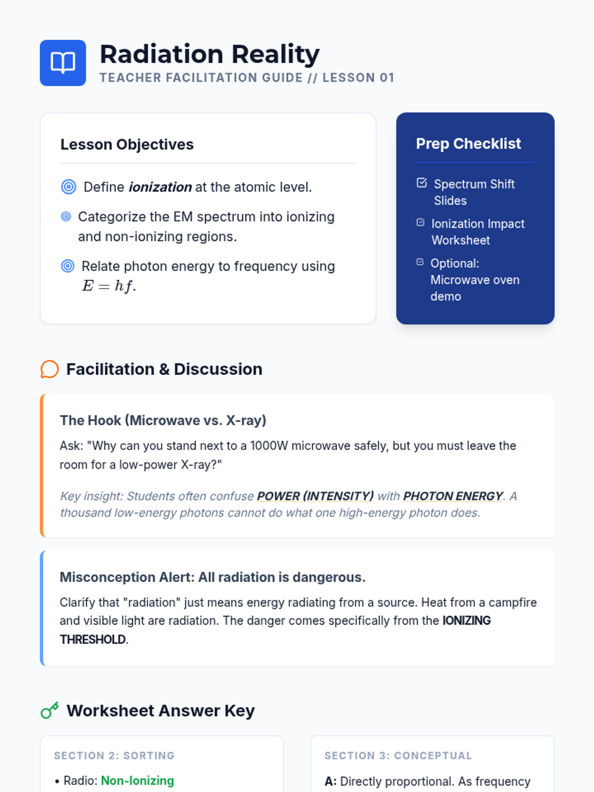 A 10th-grade physics sequence exploring the distinction between ionizing and non-ionizing radiation, their biological effects, and their applications in modern medicine. Students transition from theoretical energy calculations to practical safety and ethical debates.