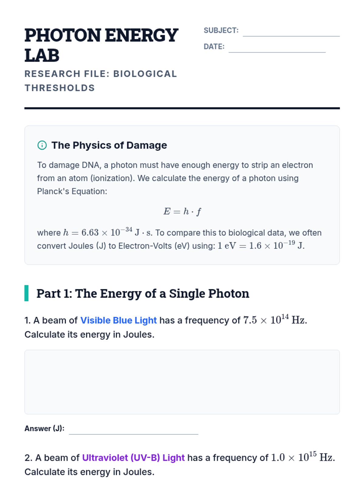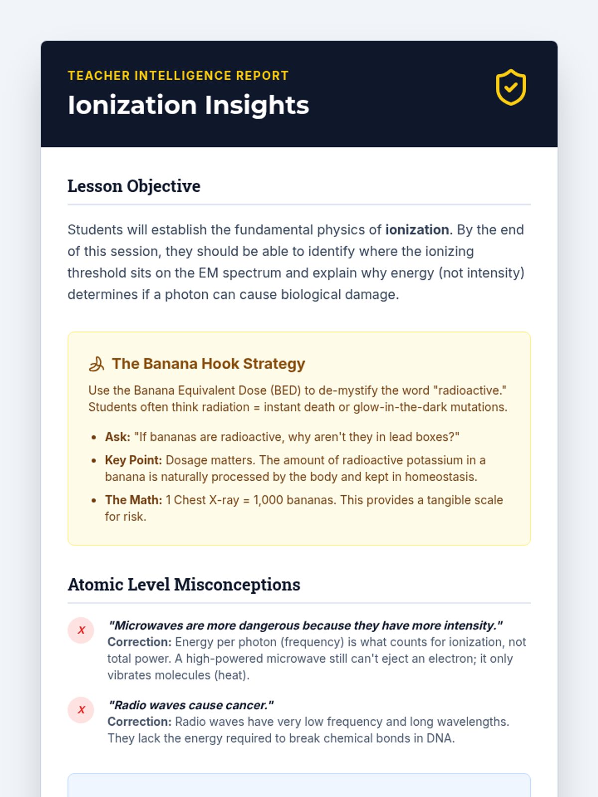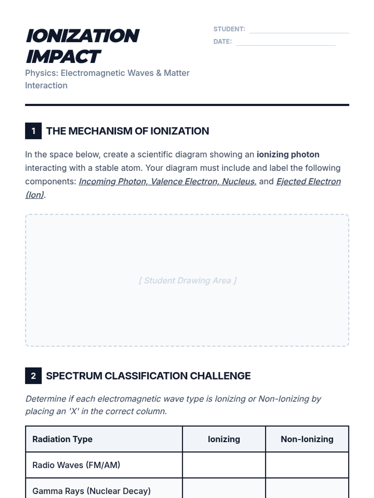 A 10th-grade physics sequence exploring the distinction between ionizing and non-ionizing radiation, their biological effects, and their applications in modern medicine. Students transition from theoretical energy calculations to practical safety and ethical debates.