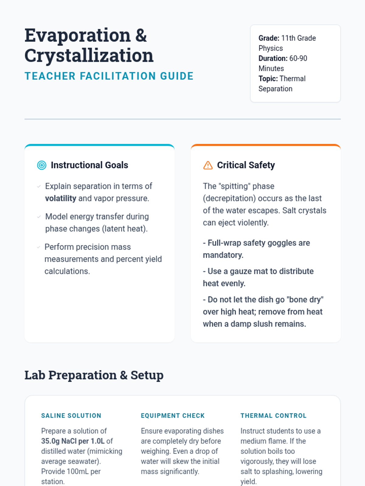 This sequence explores how thermal energy is used to separate homogeneous mixtures. Students progress from understanding solubility and saturation to performing evaporation and distillation labs, ultimately connecting these laboratory skills to industrial applications like oil refining.
