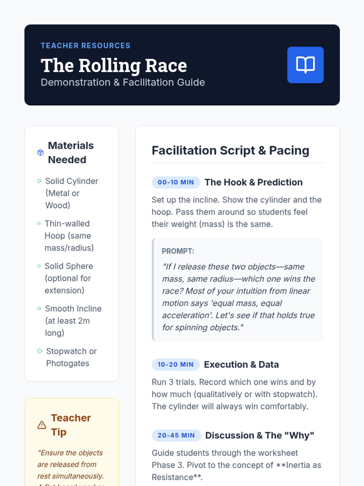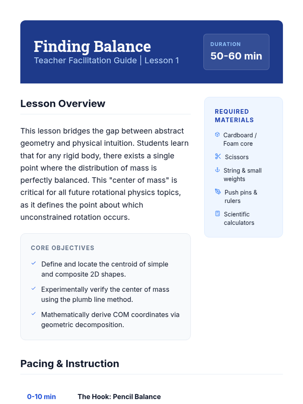 This sequence explores the physics of rotational inertia through the lens of geometry. Students transition from point-mass calculations to analyzing extended rigid bodies, investigating how the spatial distribution of mass affects an object's resistance to angular acceleration.