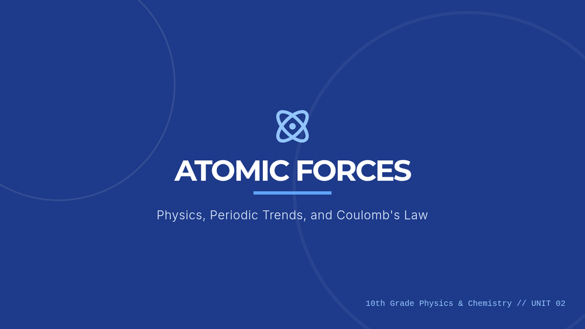 A comprehensive 10th-grade physics-based unit exploring periodic trends through the lens of Coulomb's Law and atomic data analysis. Students investigate atomic radius, ionization energy, and electronegativity to predict chemical behavior.