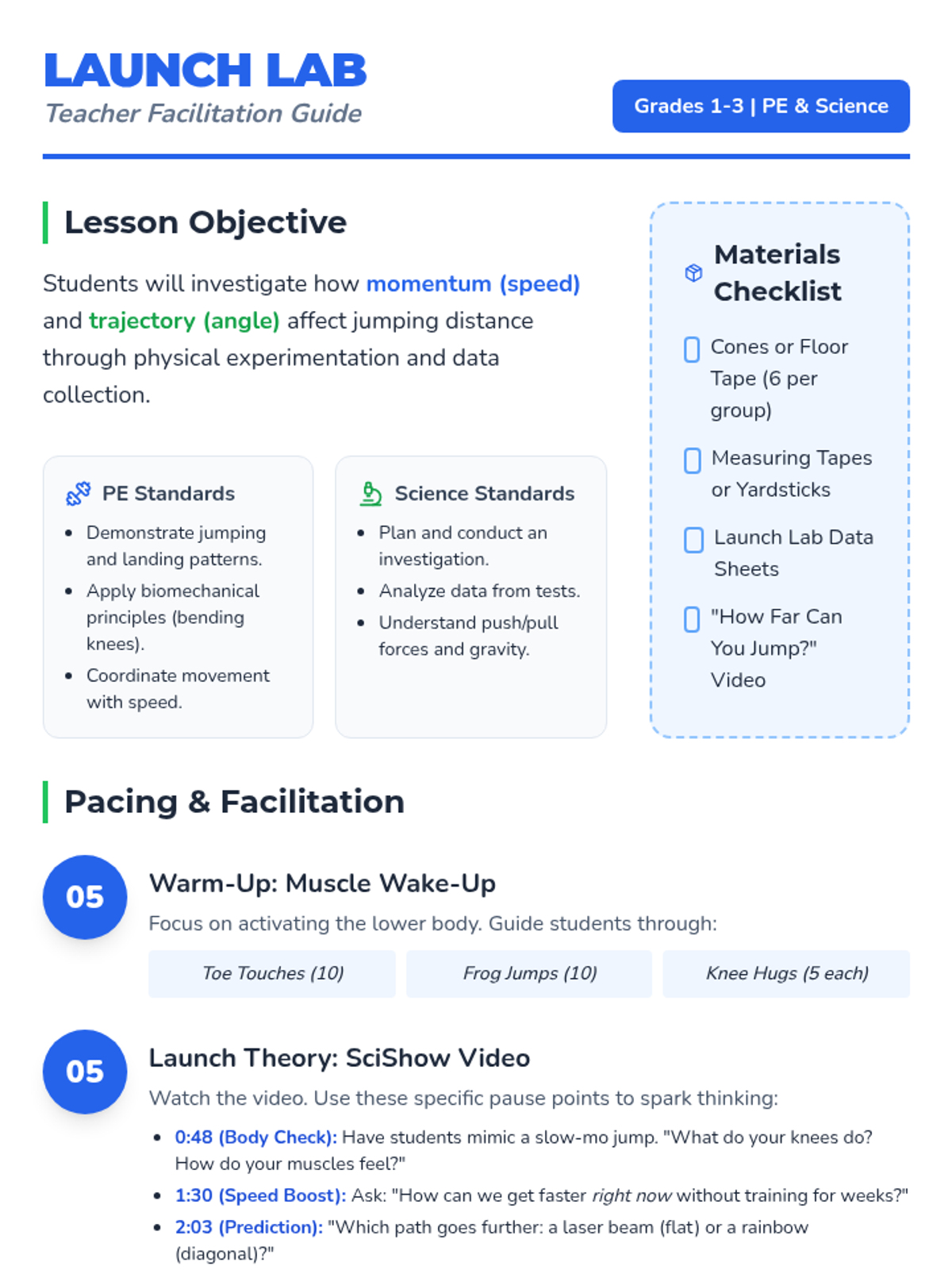 A series of integrated PE and Science lessons exploring the physics of human movement, biomechanics, and exercise physiology for early elementary students.