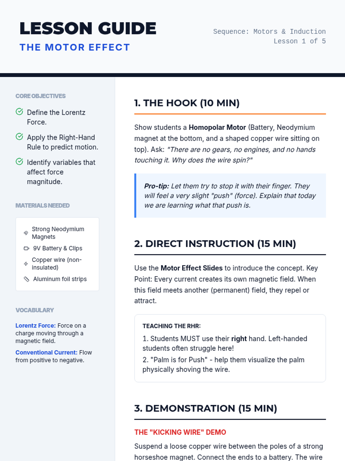 This sequence explores the fundamental relationship between electricity and magnetism. Students investigate magnetic fields around permanent magnets and current-carrying wires, build electromagnets, and calculate the forces exerted on moving charges and wires within magnetic fields.