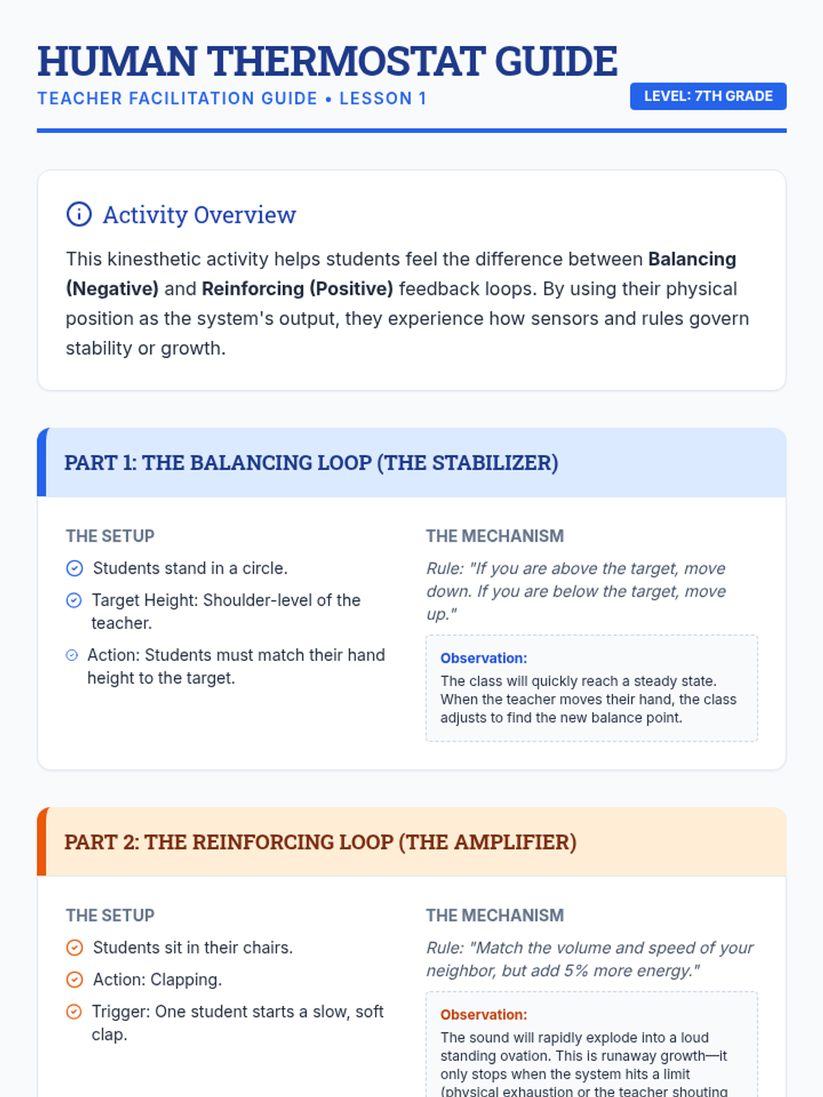 A 5-lesson unit for 7th-grade students exploring feedback loops in biological, social, and technological systems, culminating in a systems-design project.