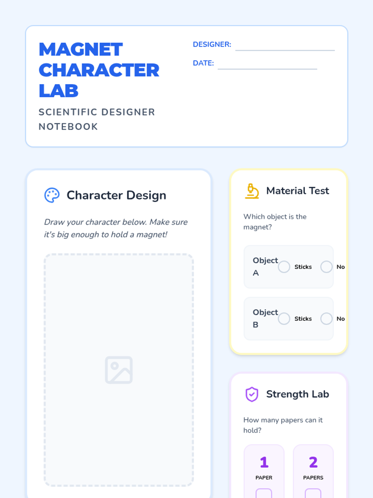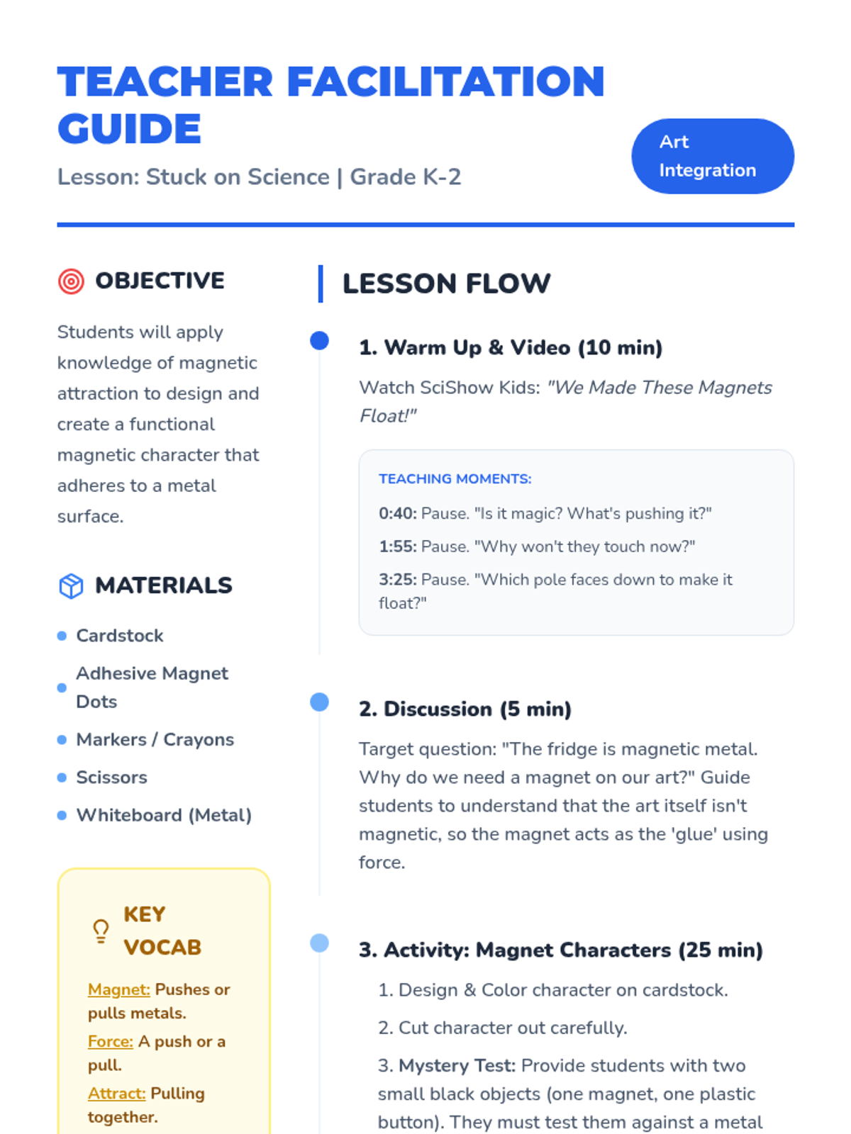 A Kindergarten through 2nd-grade art-integrated science unit exploring the properties of magnets through creative character design and hands-on testing.