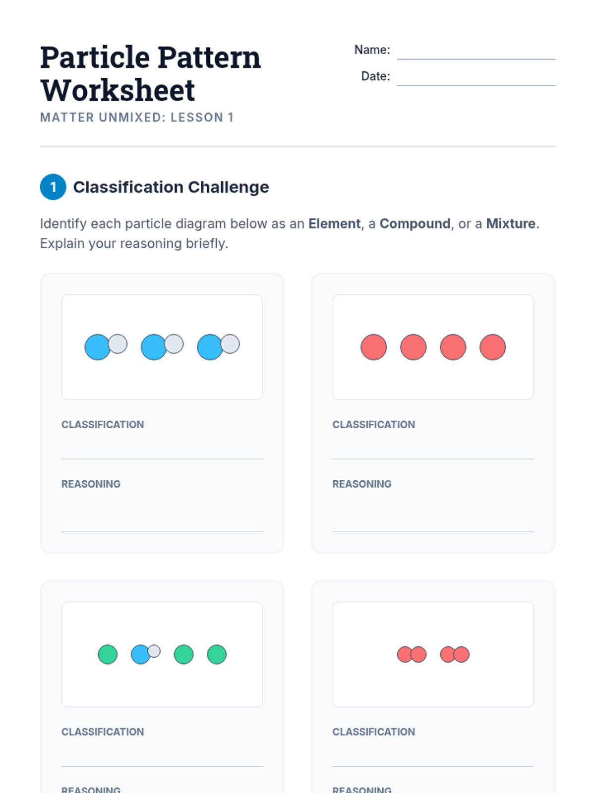 A conceptual 5-lesson sequence for 7th-grade science focusing on particle modeling to differentiate between pure substances and mixtures. Students use visualization and modeling to understand chemical vs. physical changes and the conservation of mass.