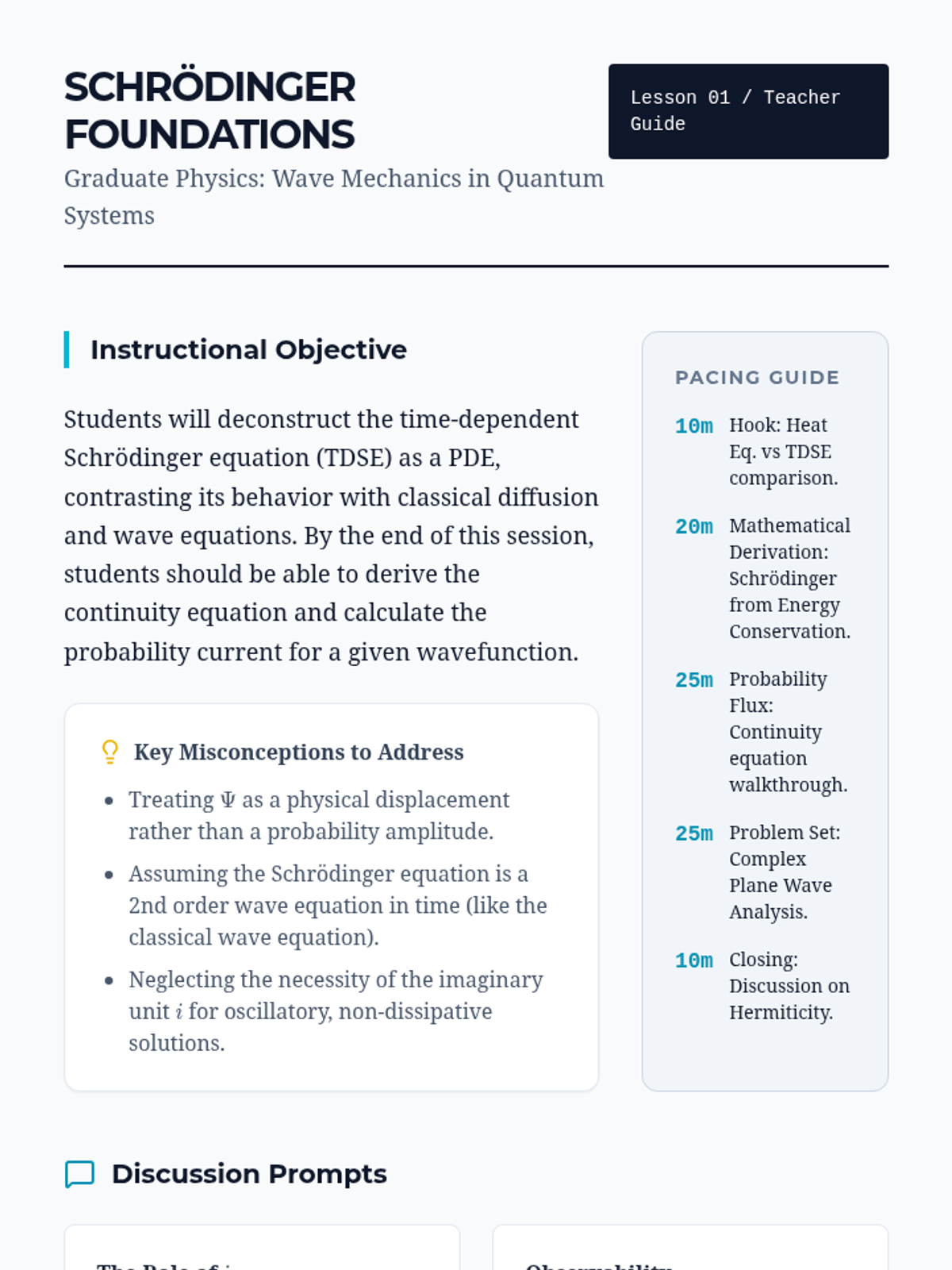 This graduate-level sequence bridges classical wave mechanics and quantum physics, exploring the mathematical formalisms of the Schrödinger equation, wave packets, tunneling, and perturbation theory through a wave-centric lens.
