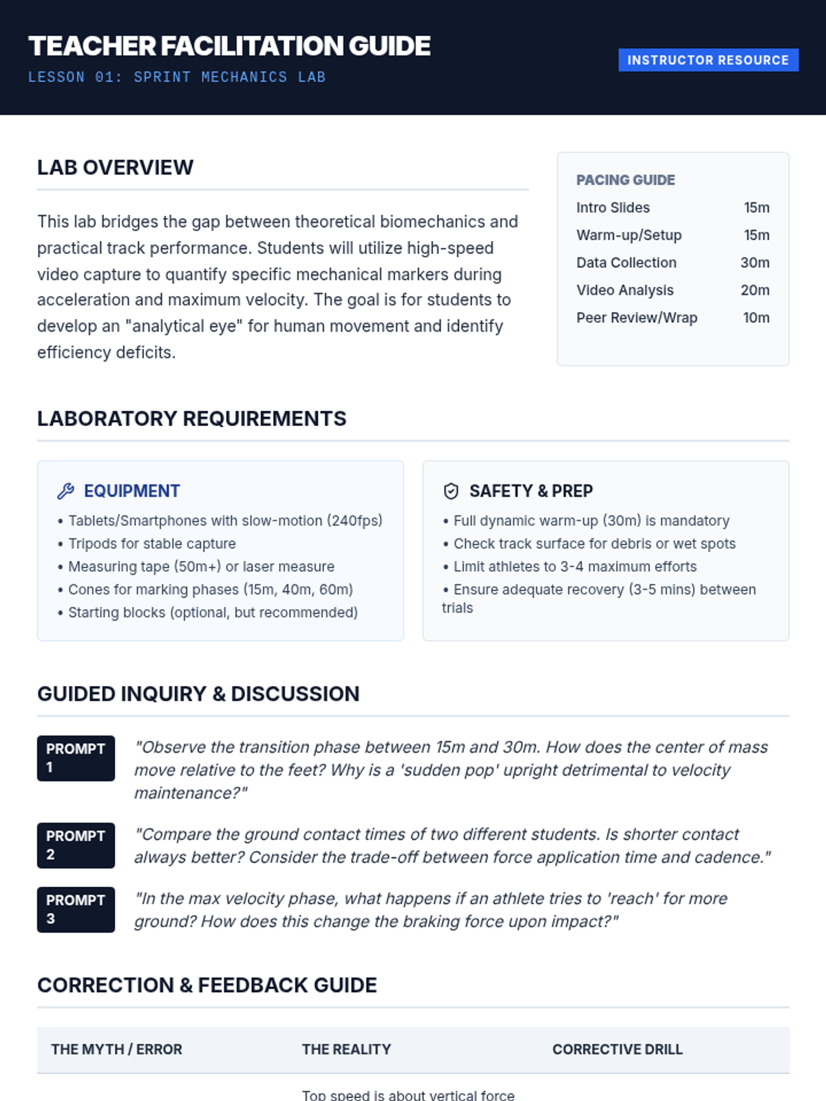 A comprehensive undergraduate sequence analyzing the biomechanical and physiological foundations of track events, from sprint mechanics to endurance energy systems and periodized training design.