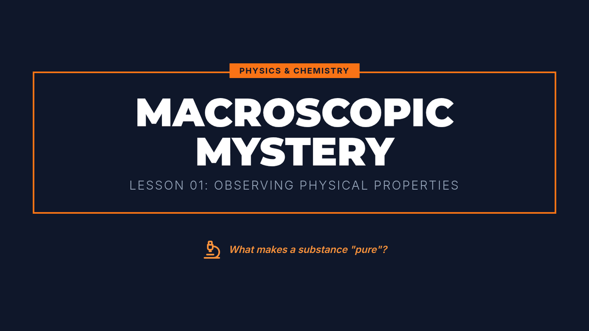 This 9th-grade physics and chemistry sequence explores the classification of matter through physical properties. Students progress from macroscopic observations to microscopic particle diagrams, conducting labs to distinguish between pure substances, homogeneous mixtures, and heterogeneous mixtures using evidence-based reasoning.