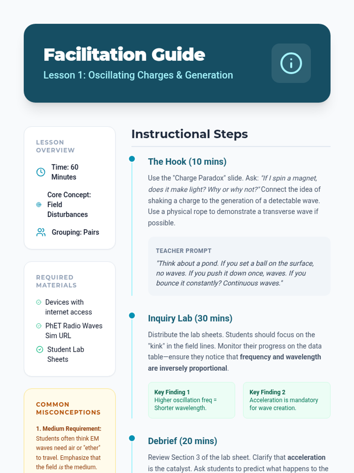 A comprehensive 12th-grade physics unit exploring the genesis, propagation, and behavior of electromagnetic waves, from oscillating charges to Maxwell's synthesis and the inverse square law.