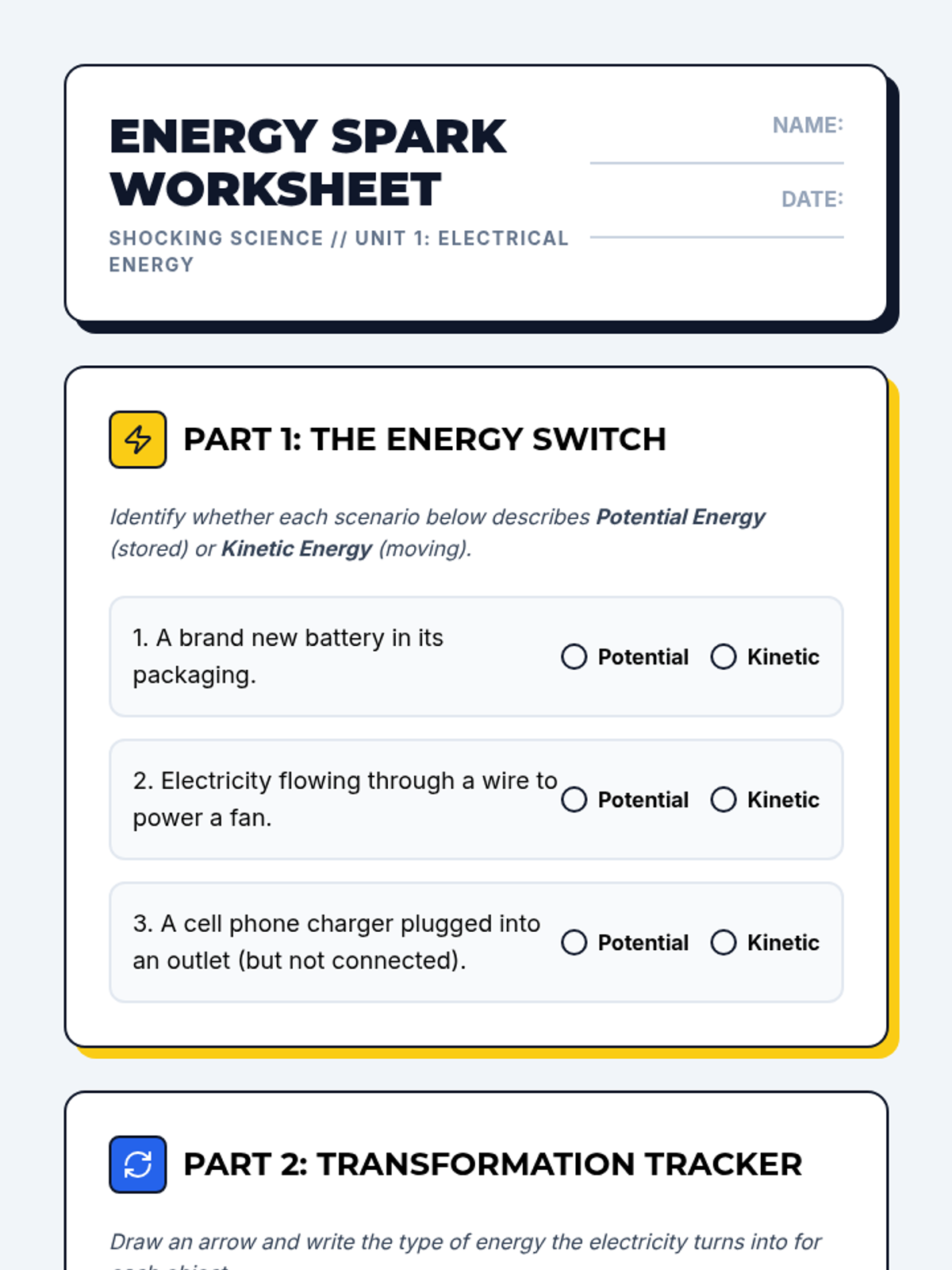 A comprehensive unit exploring the fundamentals of electricity, magnetism, and how they combine in circuits, focusing on energy transformations and hands-on visuals.