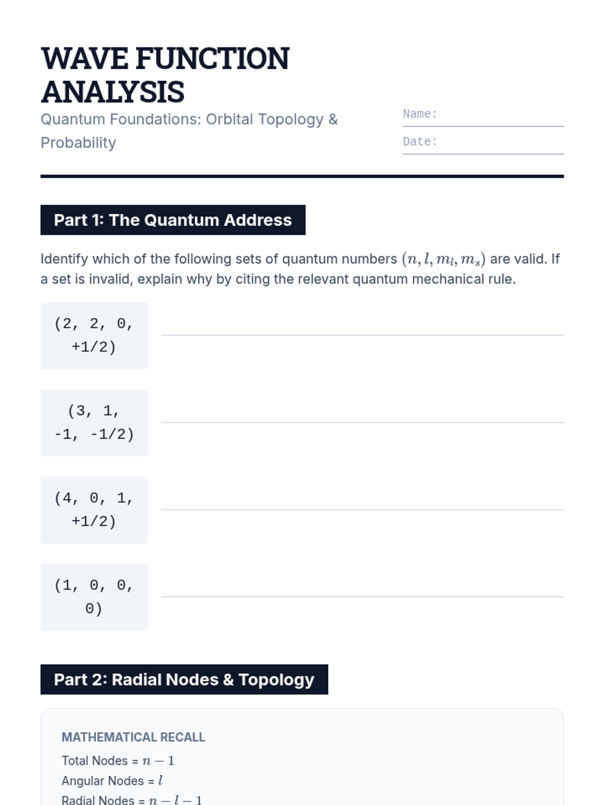 This sequence grounds the structure of the Periodic Table in the fundamental principles of quantum mechanics. Students explore quantum numbers, orbital geometry, electron spin, shielding effects, and spectroscopic validation to understand why the elements are organized as they are.
