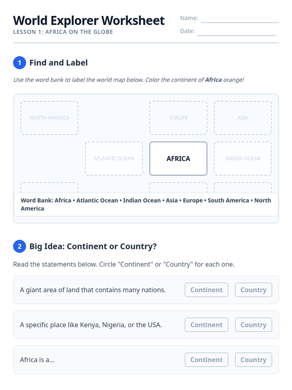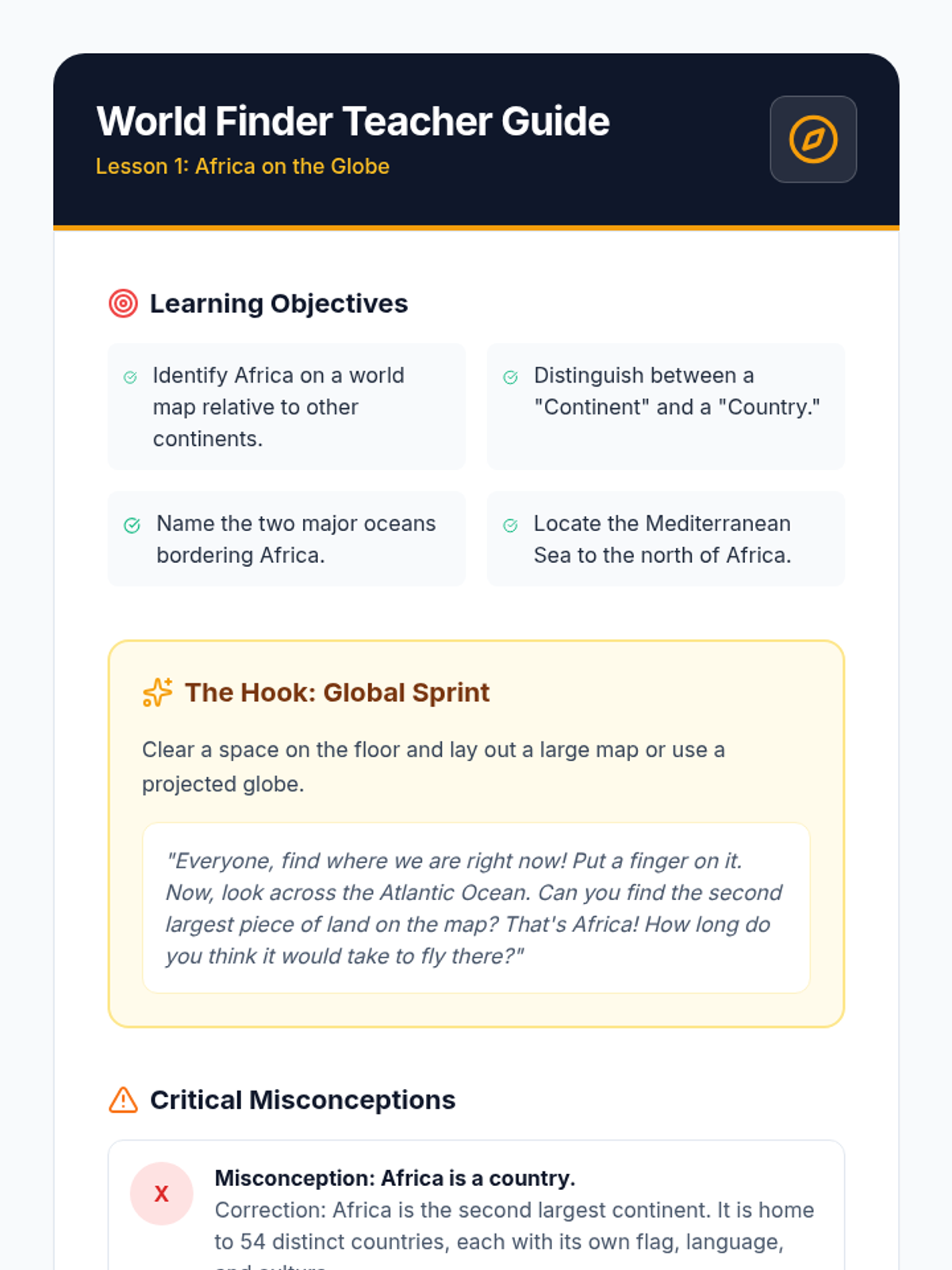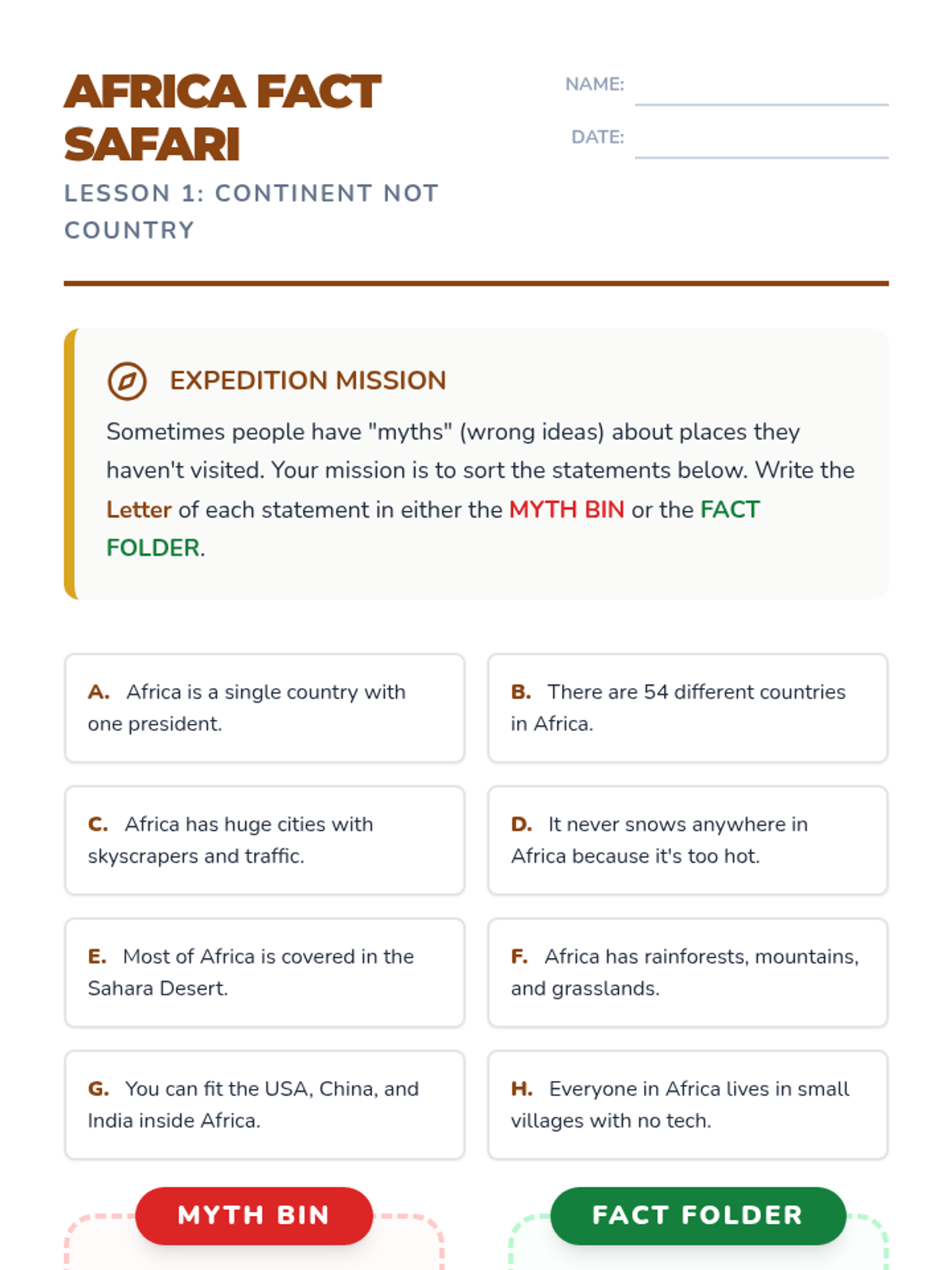 Geography of AfricaDiverse biomes, major waterways, and tectonic features across the continent's five regions. Connects physical landscapes to human settlement patterns, resource management, and cultural development.