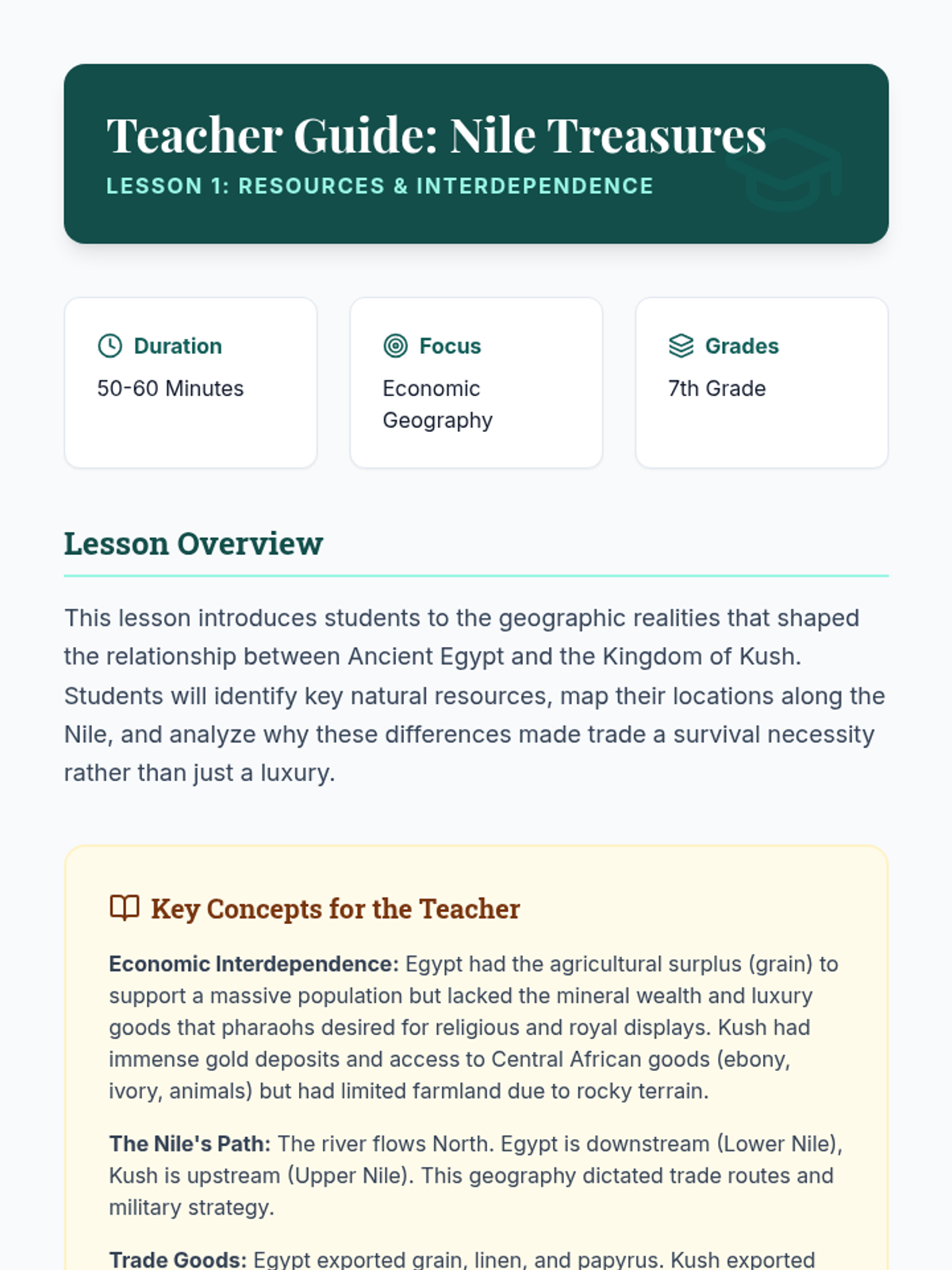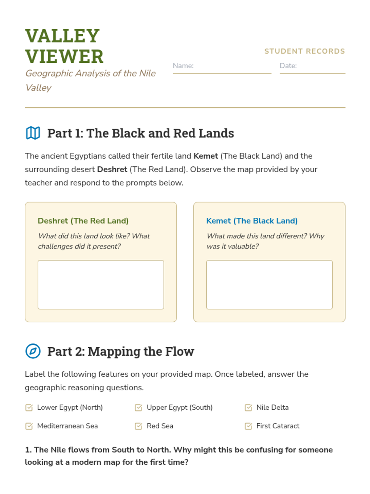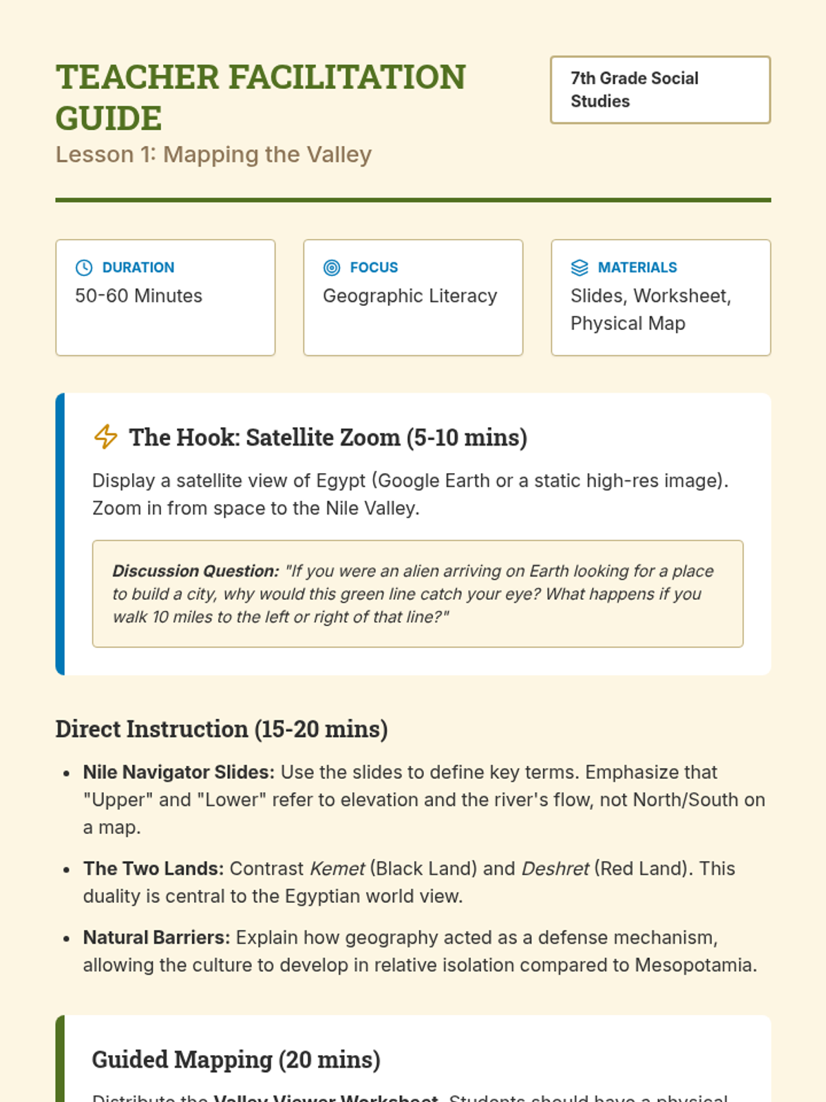 Geography of AfricaDiverse biomes, major waterways, and tectonic features across the continent's five regions. Connects physical landscapes to human settlement patterns, resource management, and cultural development.