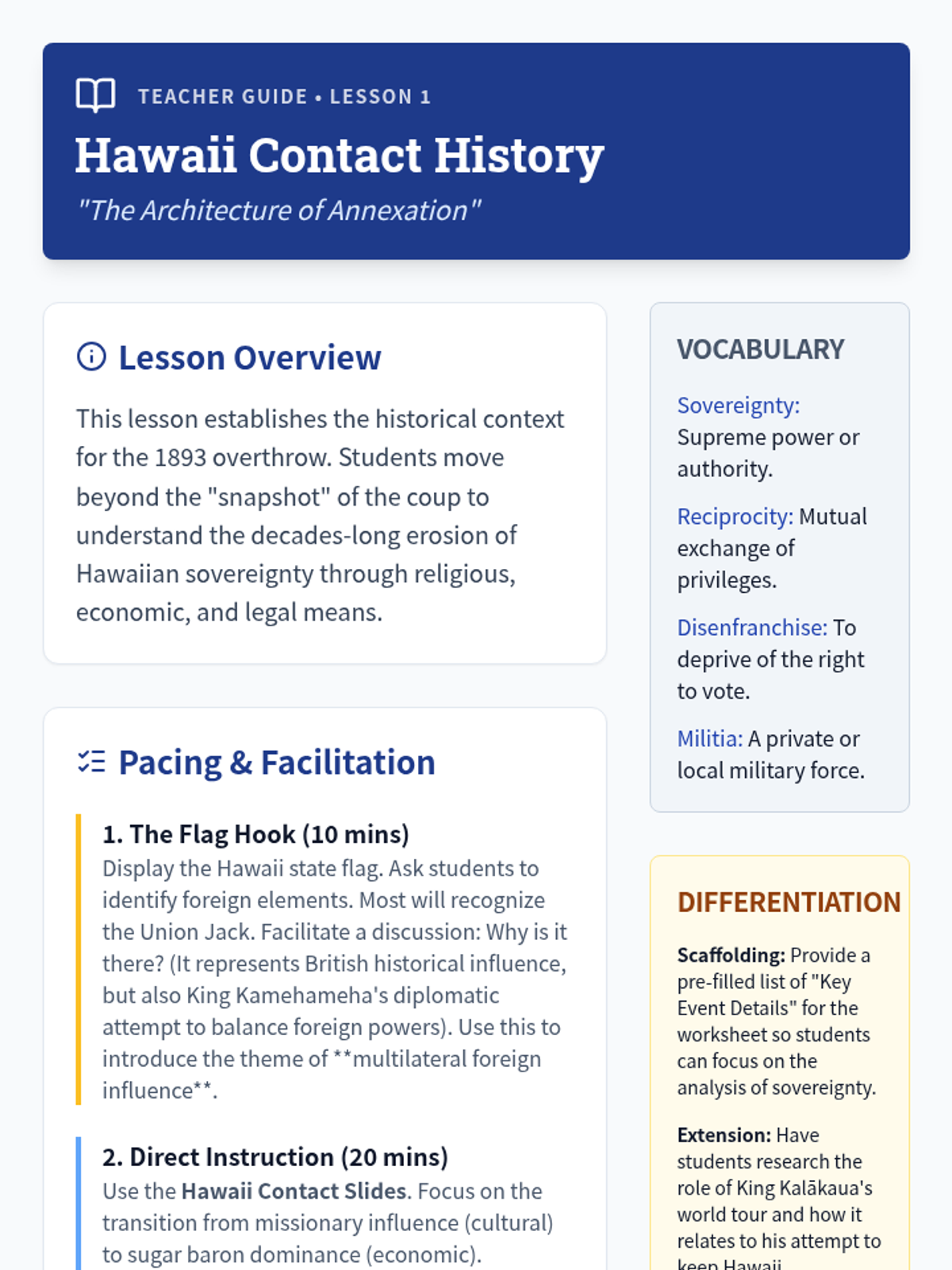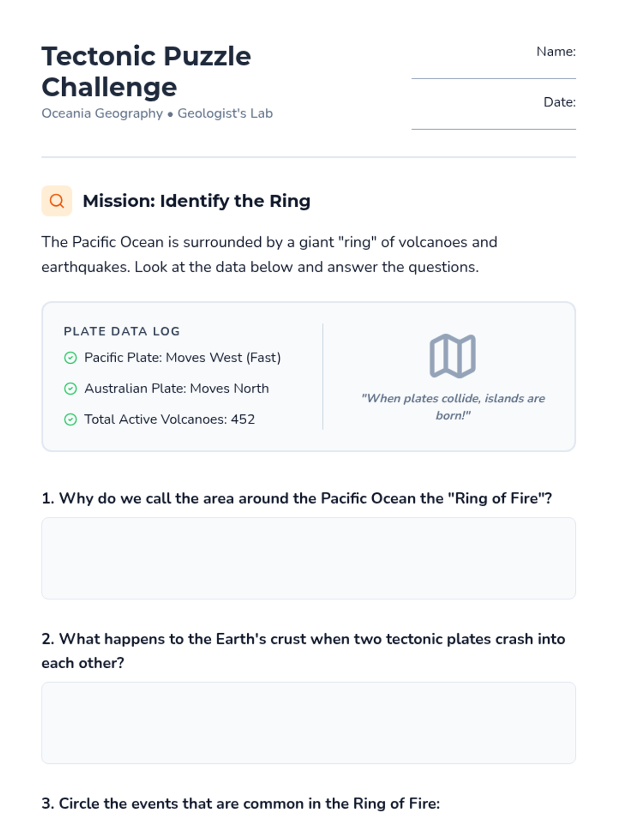 A 5-lesson sequence exploring the geological forces that create the diverse islands of Oceania, from the tectonic activity of the Ring of Fire to the biological growth of coral atolls. Students act as geologists to understand how islands are born, change, and eventually transform over millions of years.