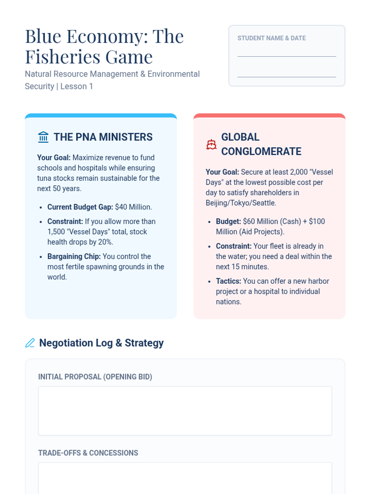 A comprehensive undergraduate course exploring the intersection of natural resource distribution, economic development, and environmental justice in the contemporary Pacific. Students analyze geopolitical tensions, extractive industries, climate change sovereignty, and nuclear legacies to draft policy recommendations for regional sustainability.
