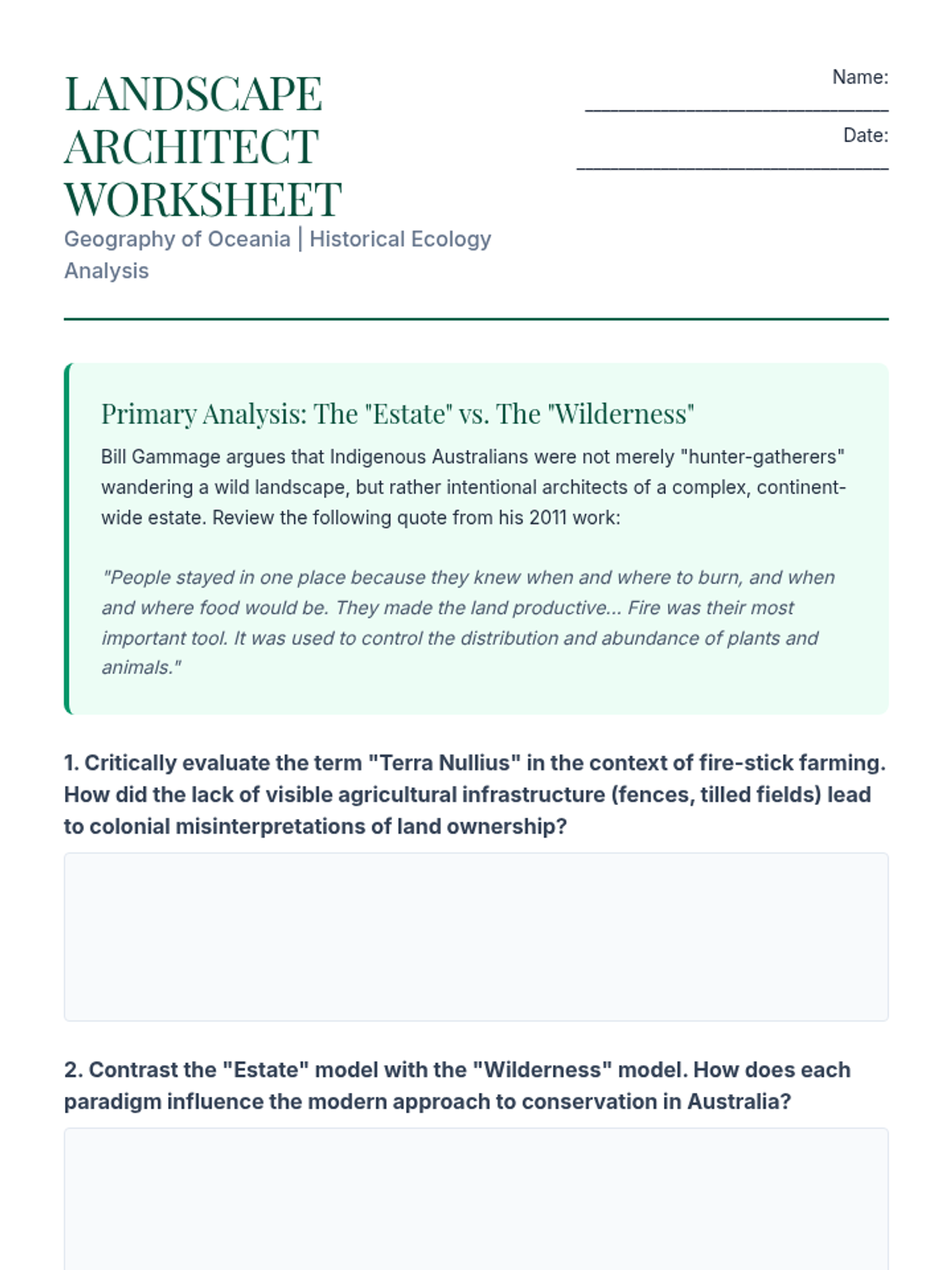 This sequence examines the adaptive strategies of human societies in Oceania, from Indigenous Australian land management to Polynesian maritime navigation and contemporary urban challenges. Students critique historical models of settlement and propose sustainability frameworks for insular environments.