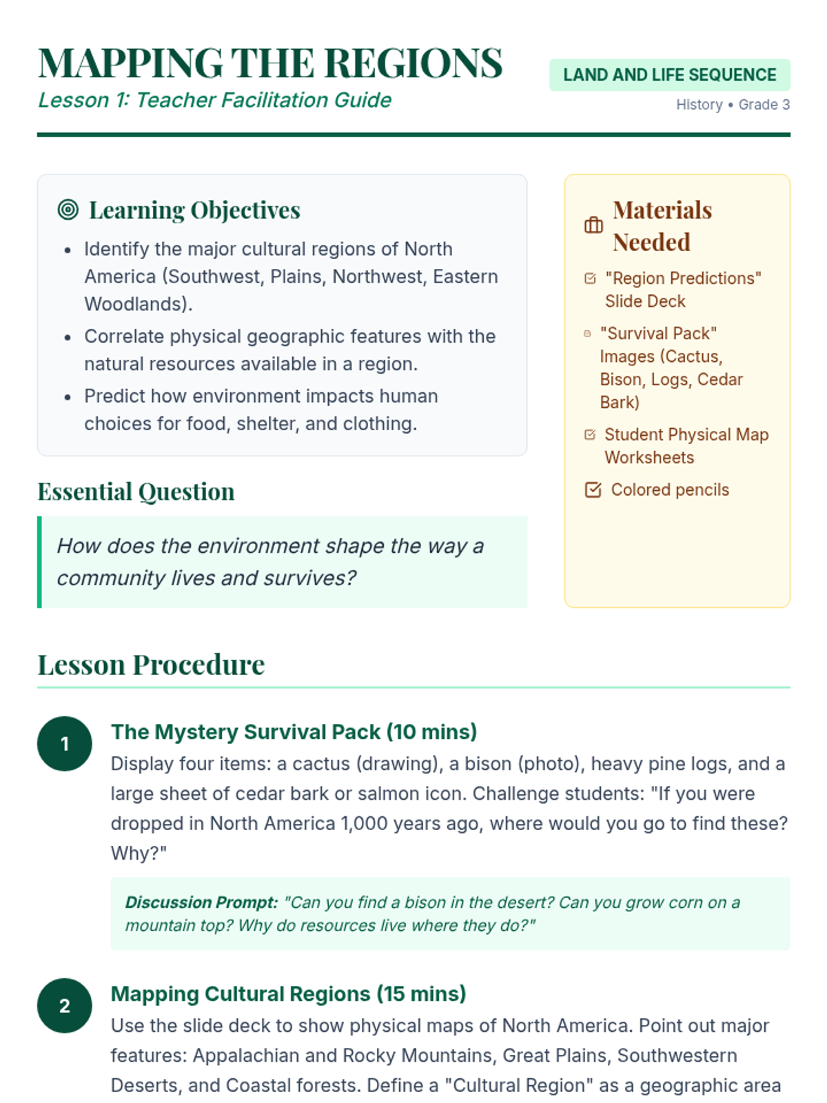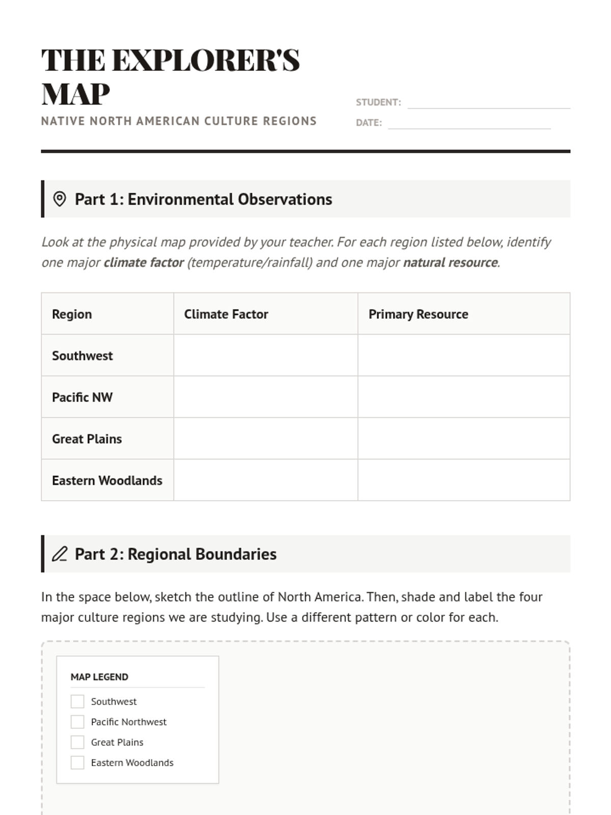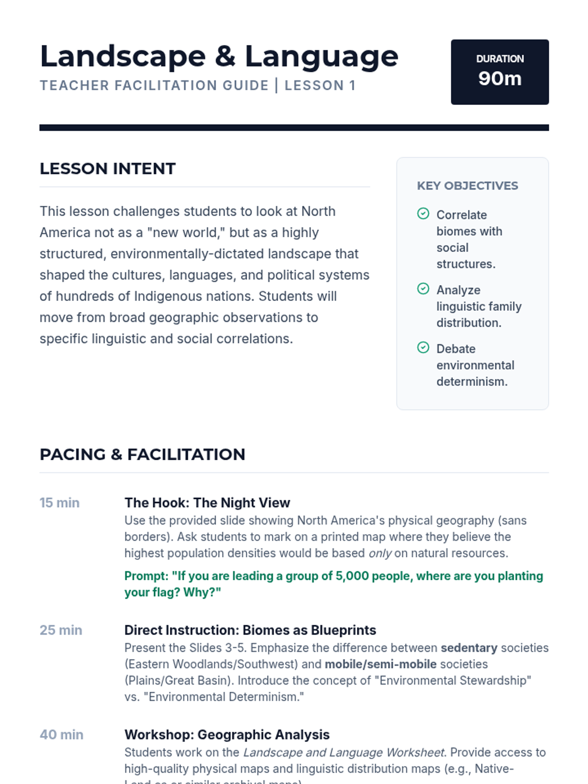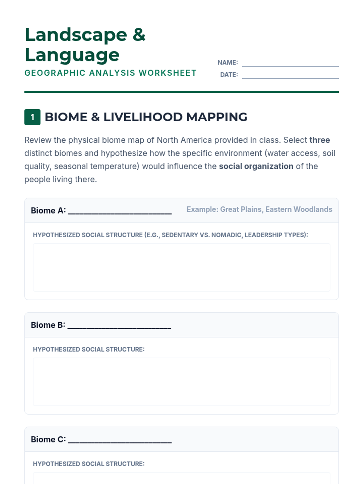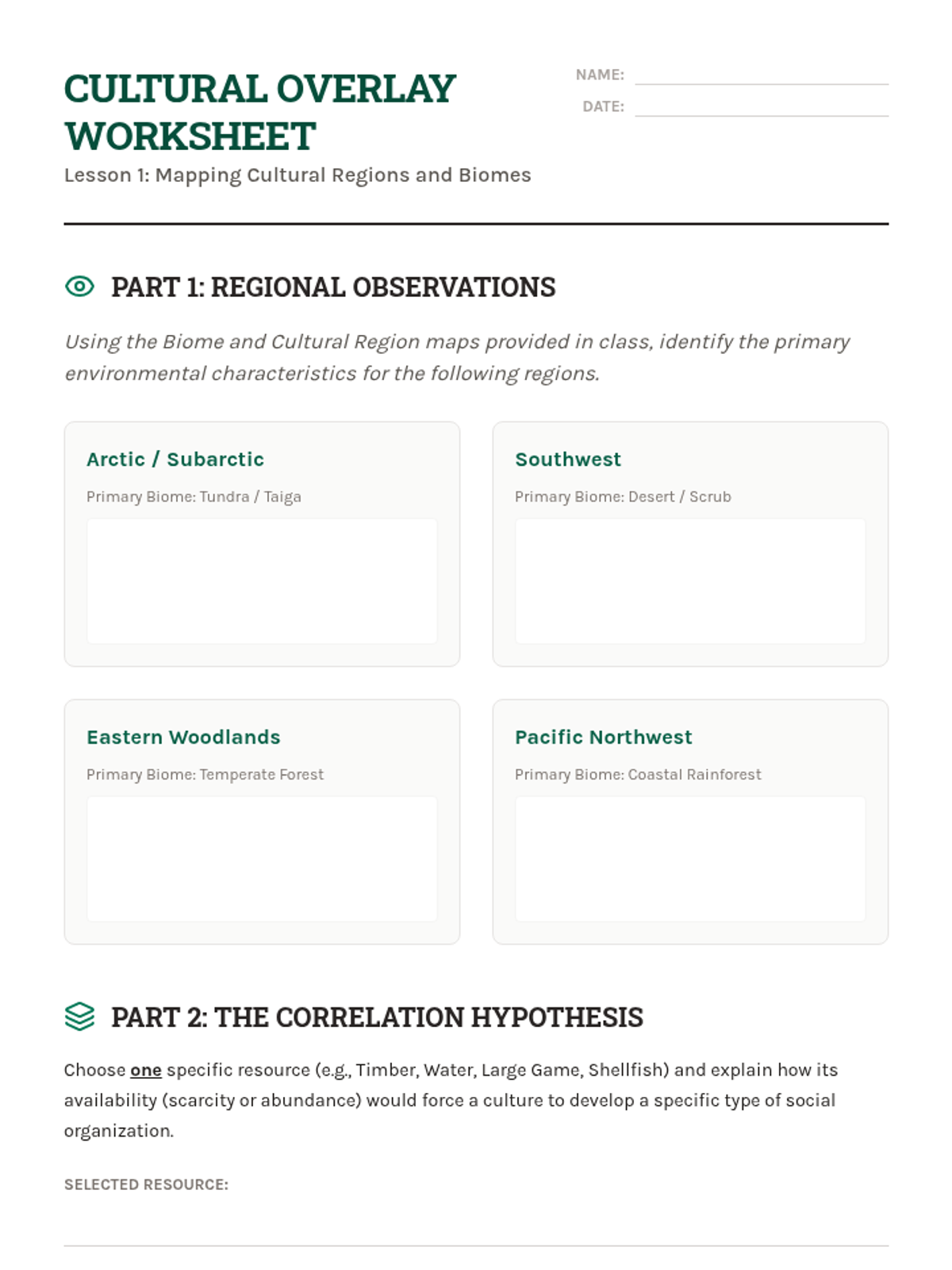 An inquiry-based exploration of how North American biomes shaped the economic, social, and cultural structures of Indigenous nations before European contact.