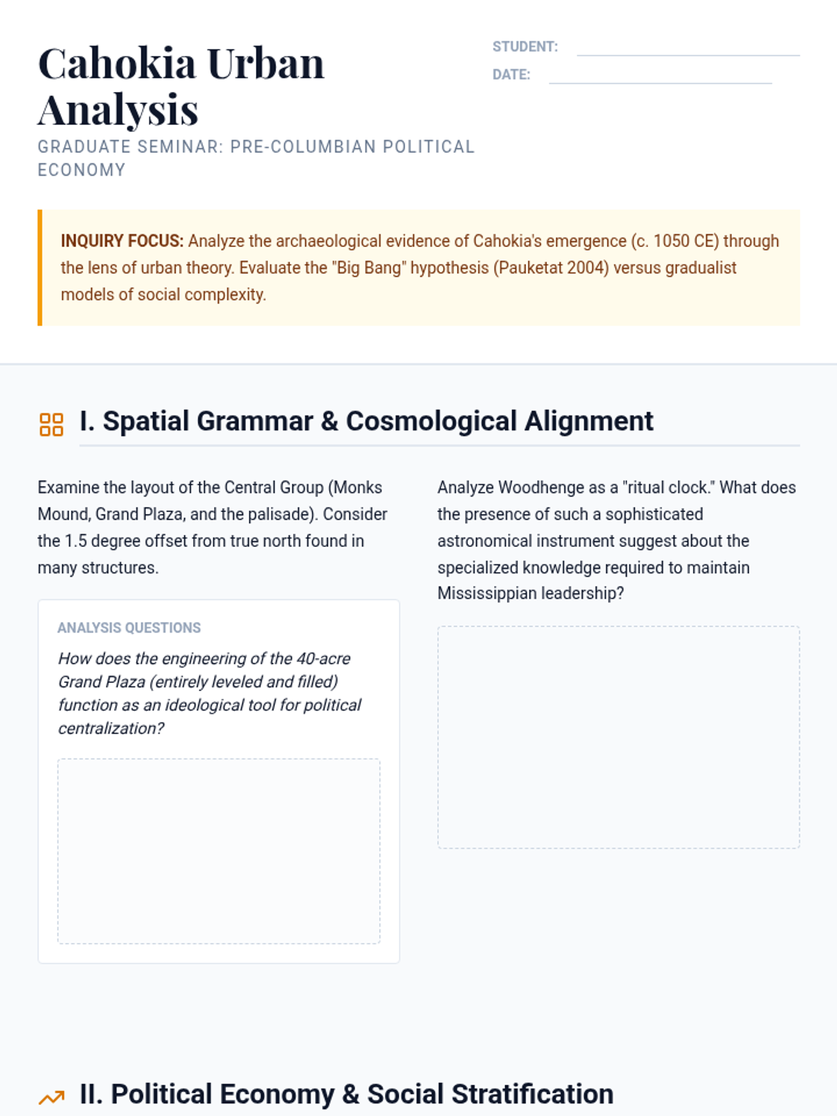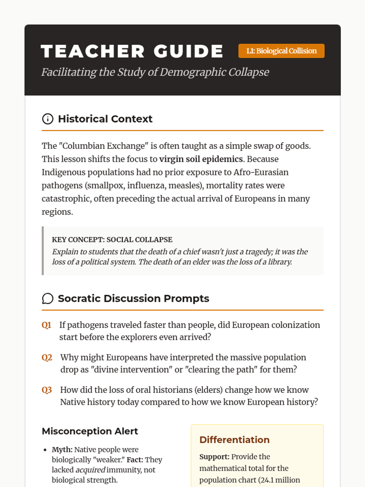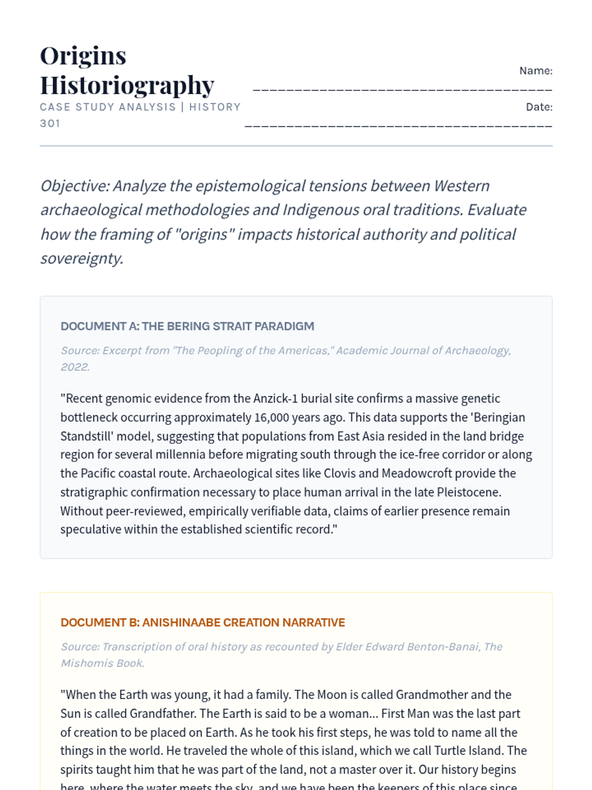 This sequence challenges students to evaluate competing historical methodologies used to understand pre-contact North America, juxtaposing archaeological evidence with Indigenous oral traditions. Students explore the complexity of societies from Cahokia to the Haudenosaunee, critiquing narratives that marginalize pre-Columbian sophistication.
