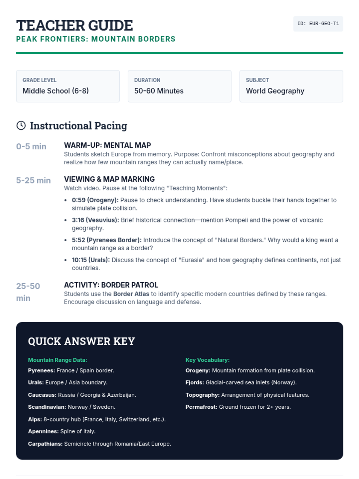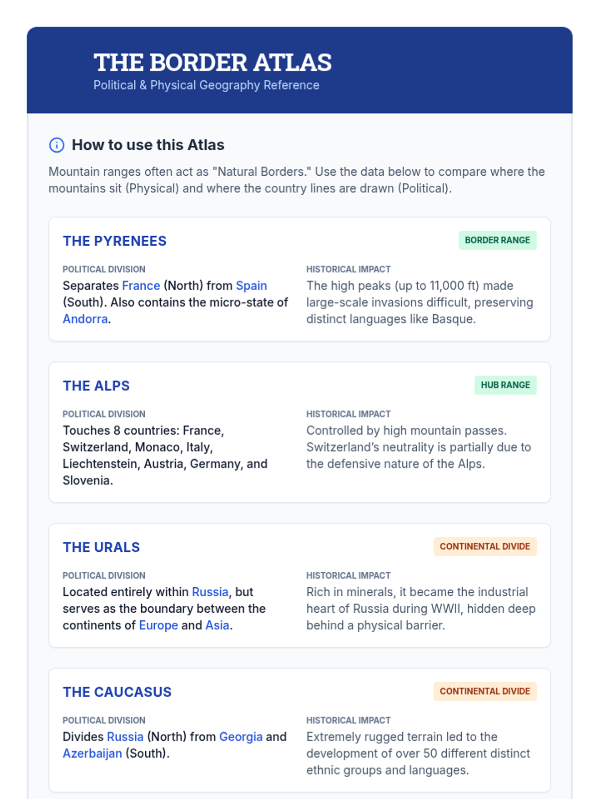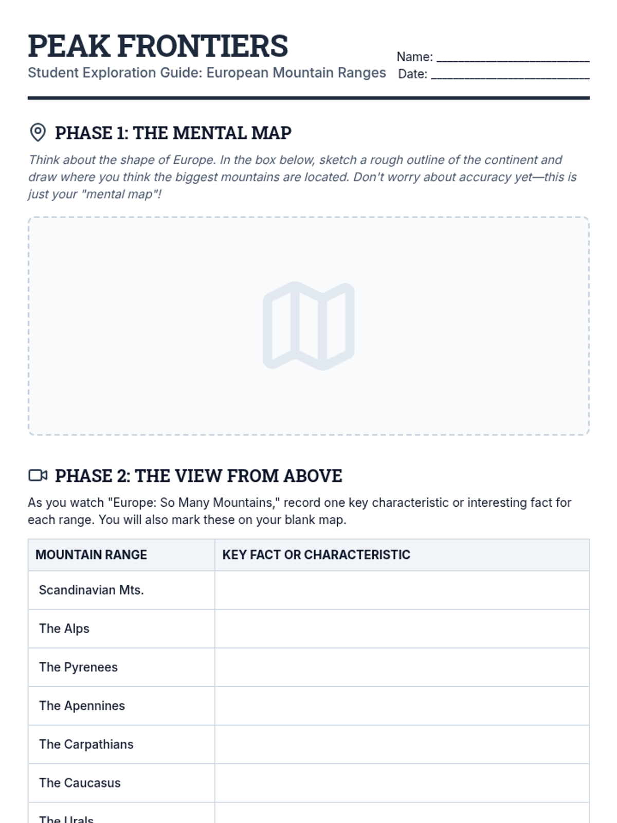 Geography of EuropePhysical landforms, climate zones, and political boundaries across the European continent. Examines the relationship between diverse landscapes and human settlement patterns.