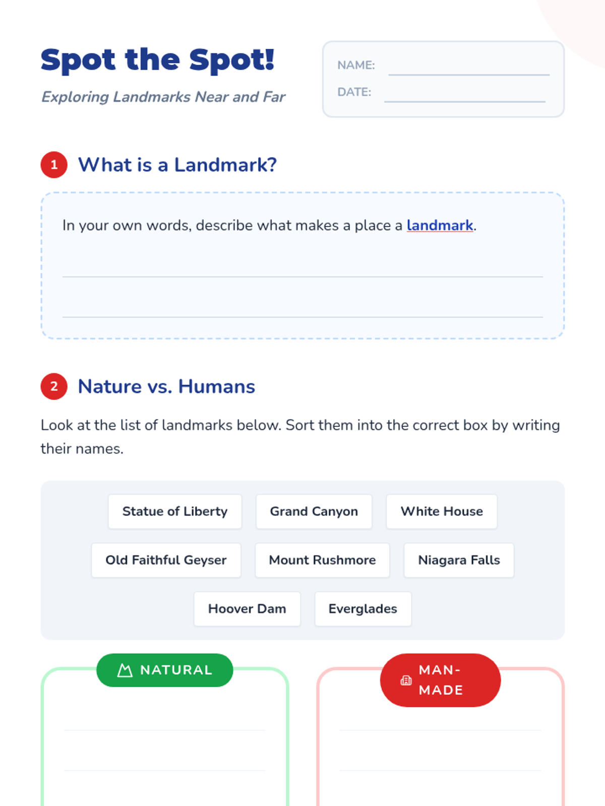 Students investigate the significance of major American landmarks, exploring their history, engineering, and symbolism. Through research and creative projects, they learn what makes a site important enough to be preserved as a national treasure.