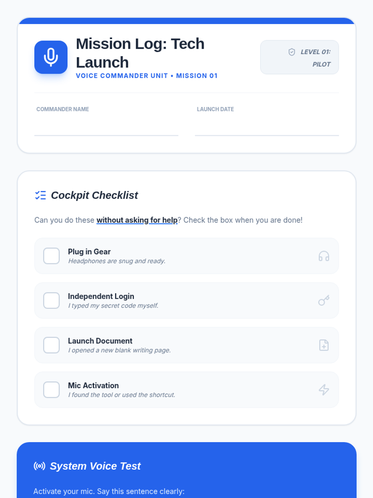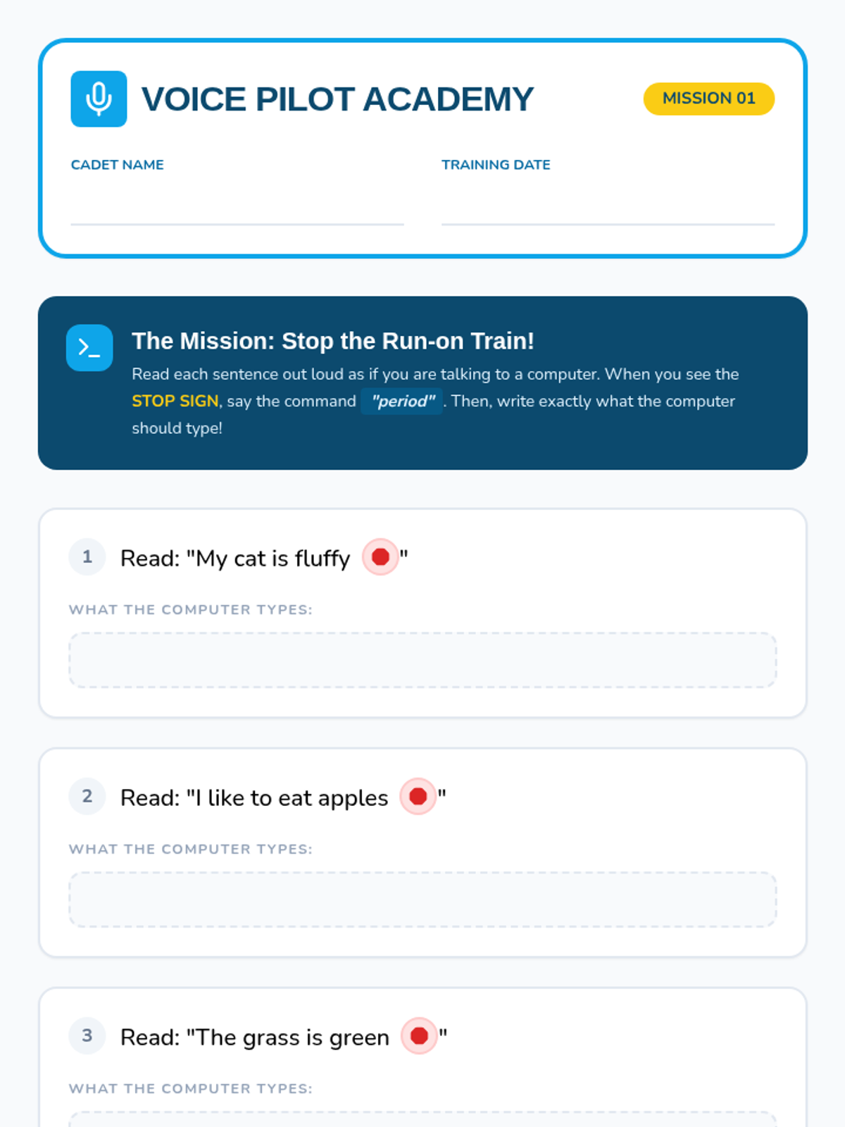 A comprehensive sequence designed for 2nd-grade students to master speech-to-text dictation commands, focusing on punctuation and basic formatting to create coherent written work using their voice.