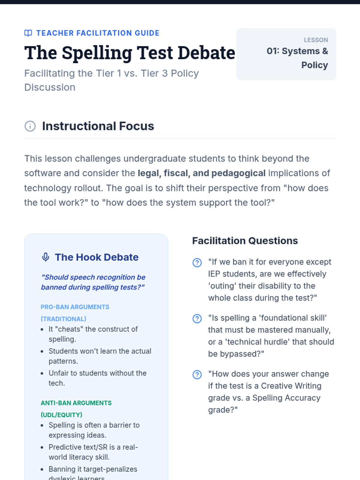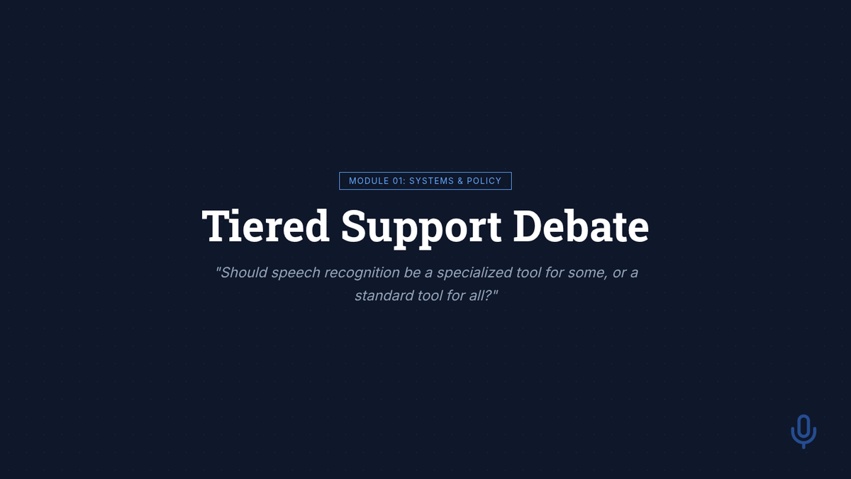 This sequence explores the practical, ethical, and environmental considerations for implementing speech recognition technology in schools. Future educators will move beyond software mechanics to design implementation plans that address noise management, social stigma, data privacy, and UDL-based policy.