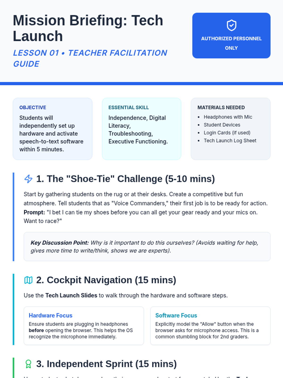 This sequence empowers 9th-grade students to integrate Text-to-Speech (TTS) into their high school workflows through self-advocacy and digital organization. Students move from identifying reading barriers in their schedules to creating a professional Access Plan for their teachers.
