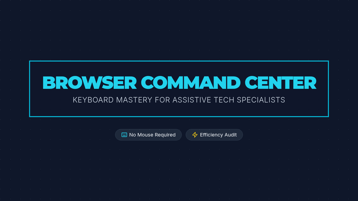 This sequence explores the mechanics of keyboard-only web navigation for graduate students in special education and assistive technology. It covers browser controls, semantic HTML navigation, complex form interactions, caret browsing, and professional accessibility auditing techniques.