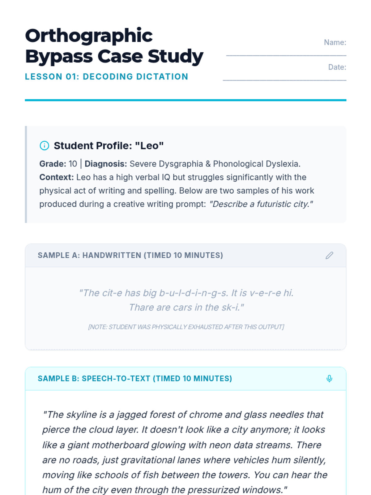 This project-based sequence prepares graduate students in Special Education to teach effective 'listen-read-edit' workflows for speech recognition technology. Participants move from identifying unique phonetic errors to designing instructional scaffolds and facilitating inclusive peer reviews for students with physical disabilities.