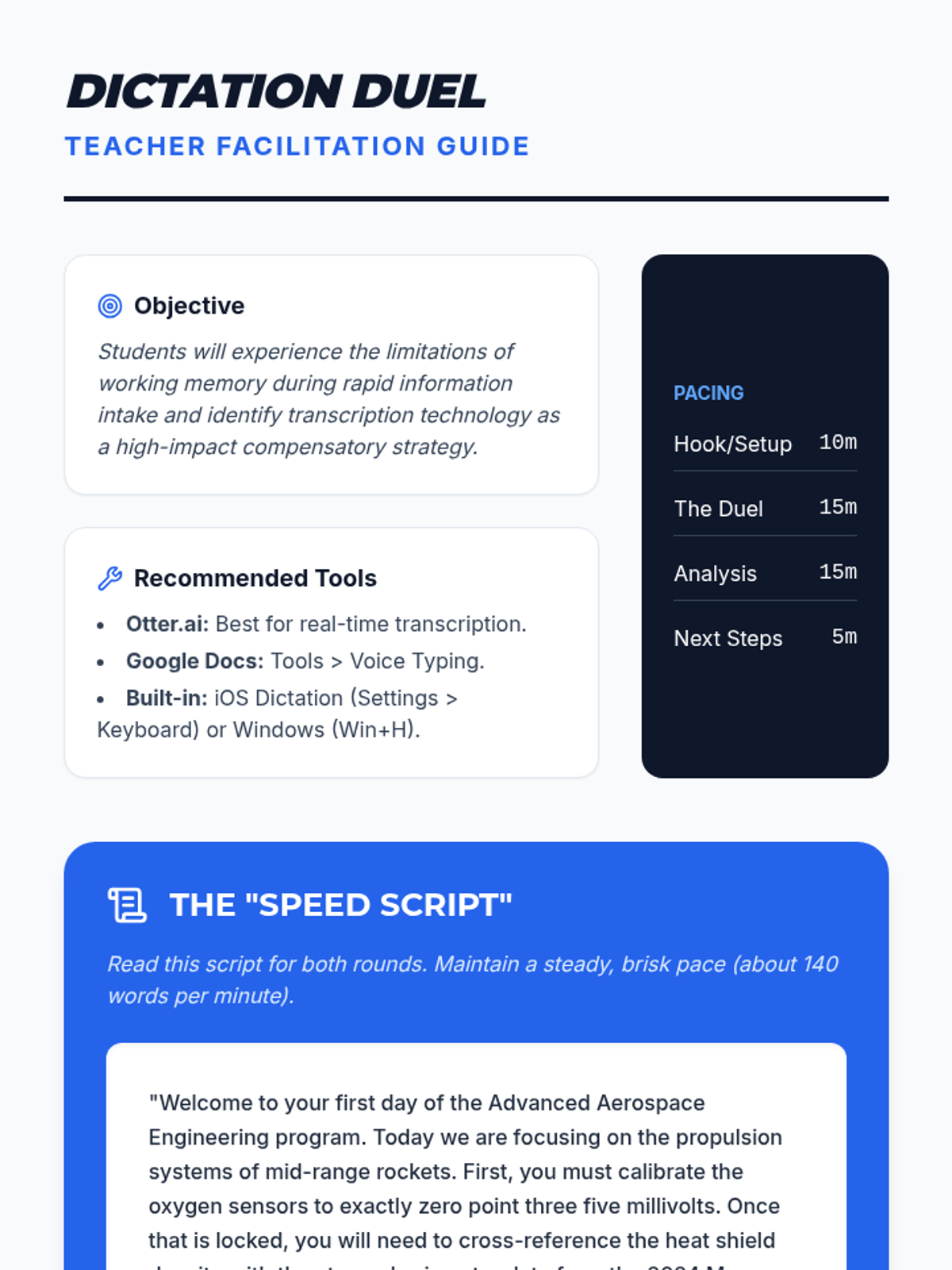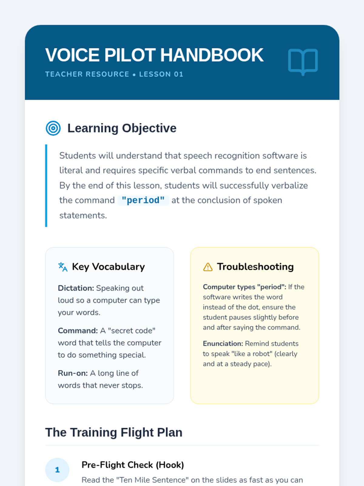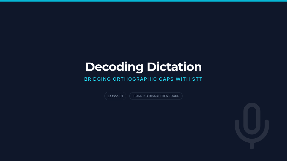 A comprehensive training program for future special educators on the pedagogy of speech recognition. This sequence focuses on transitioning students from traditional writing to verbal composition by addressing cognitive load, instructional modeling, command scaffolding, and error resilience.