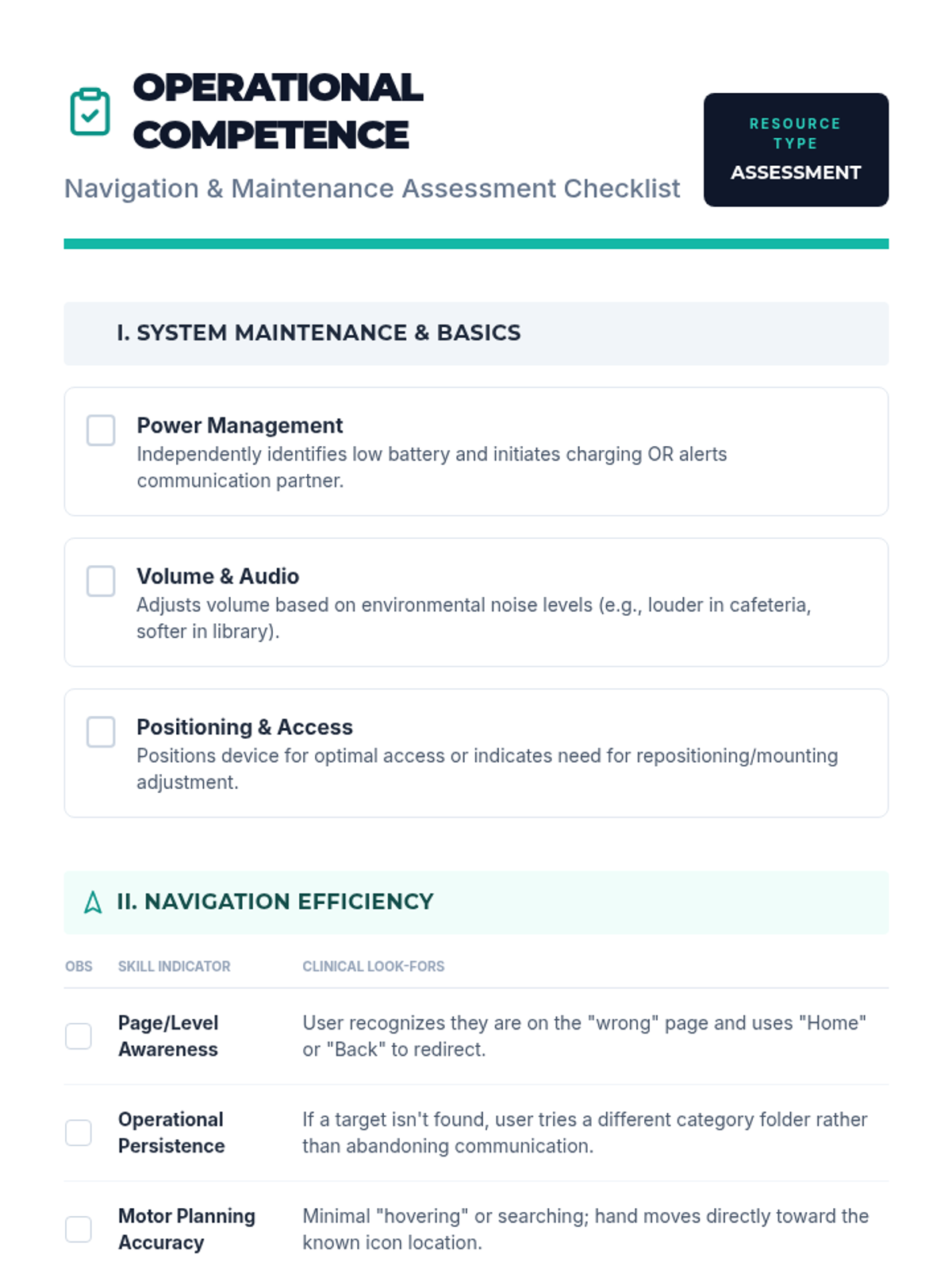 A graduate-level sequence focused on assessing and tracking AAC device navigation efficiency and operational competence. Students will learn to use data logging, measure navigation speed, and design operational goals for AAC users.