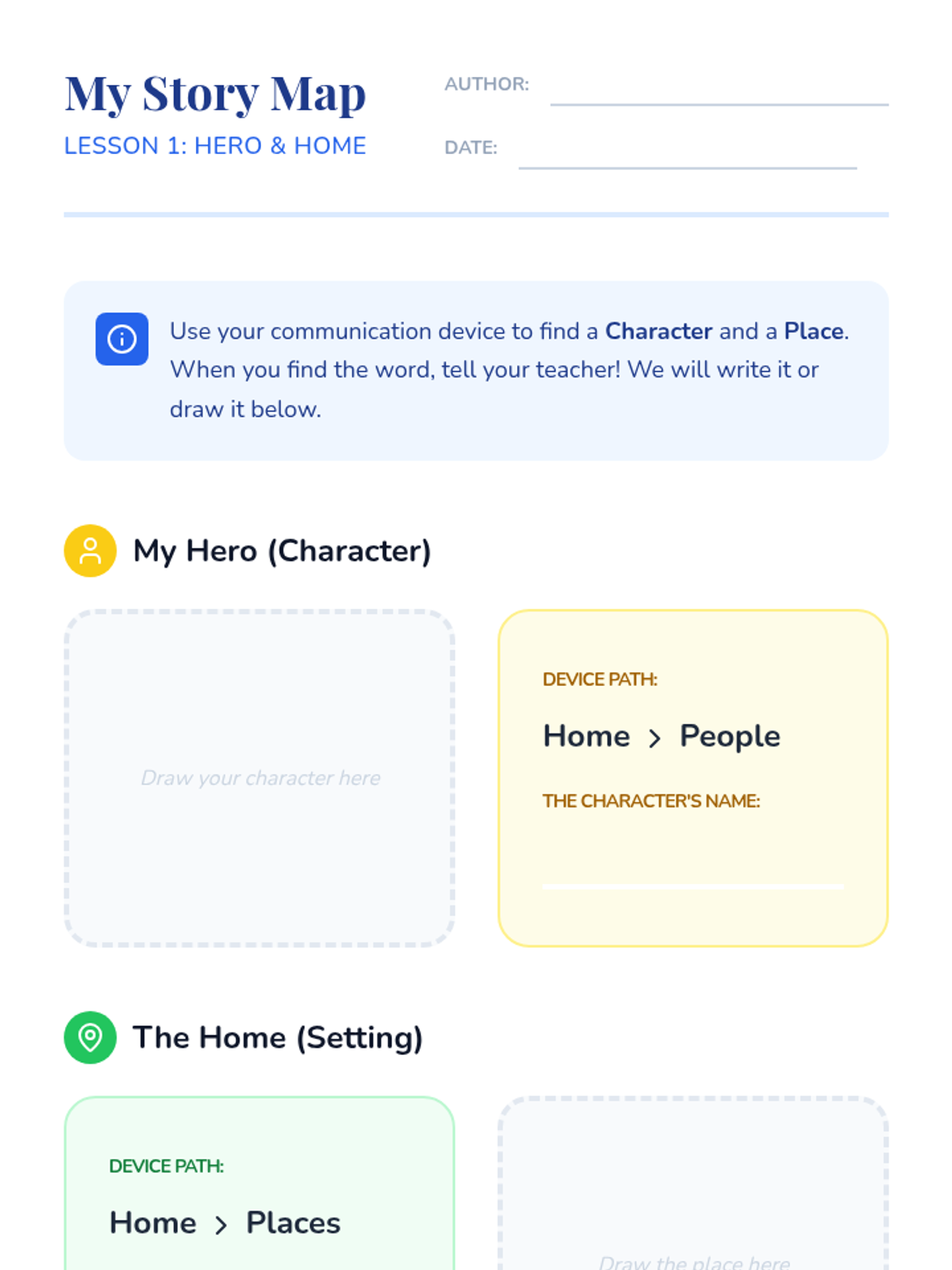 A project-based sequence where 3rd-grade students use AAC device navigation to compose and present a personal or fictional narrative. Students progress from vocabulary selection to sequencing, drafting actions, and adding emotional depth, culminating in a public presentation.
