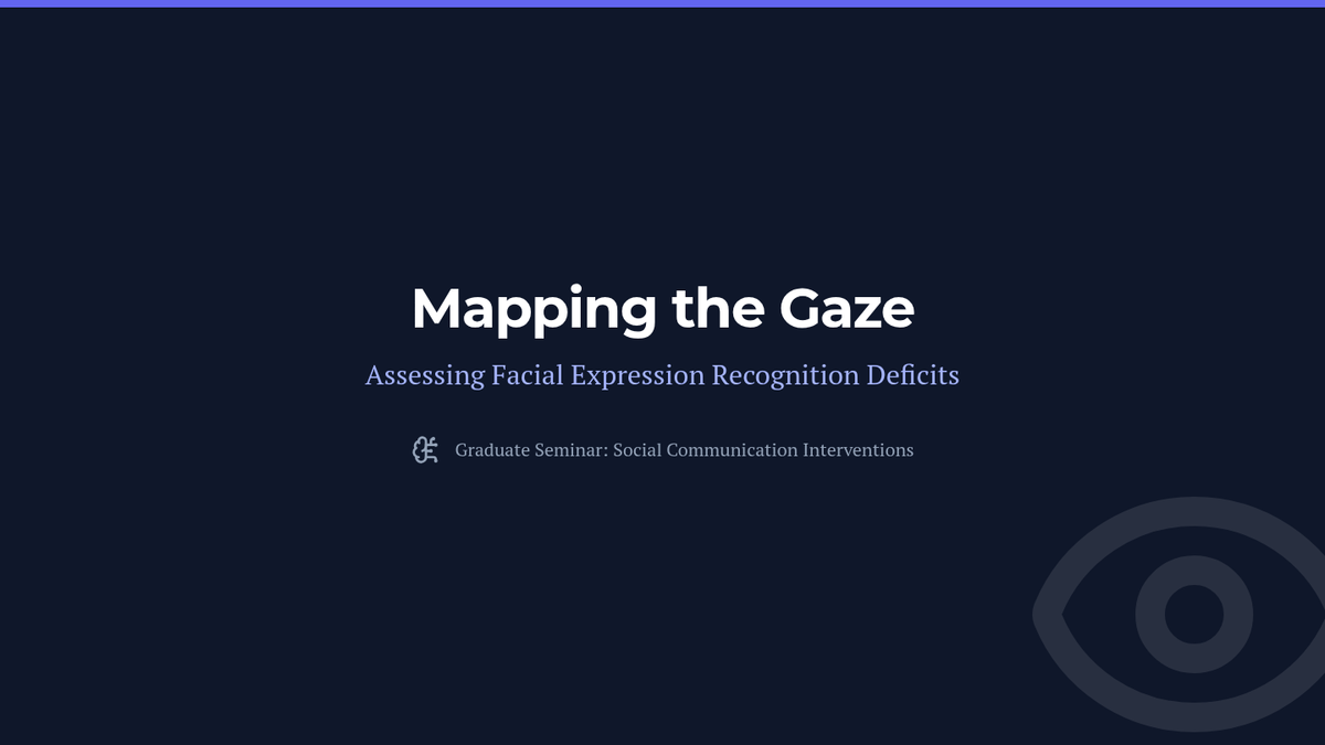 A comprehensive graduate-level sequence focused on designing evidence-based interventions for facial expression recognition. Students transition from diagnostic assessment to instructional scaffolding and technology integration, culminating in a professional intervention plan.