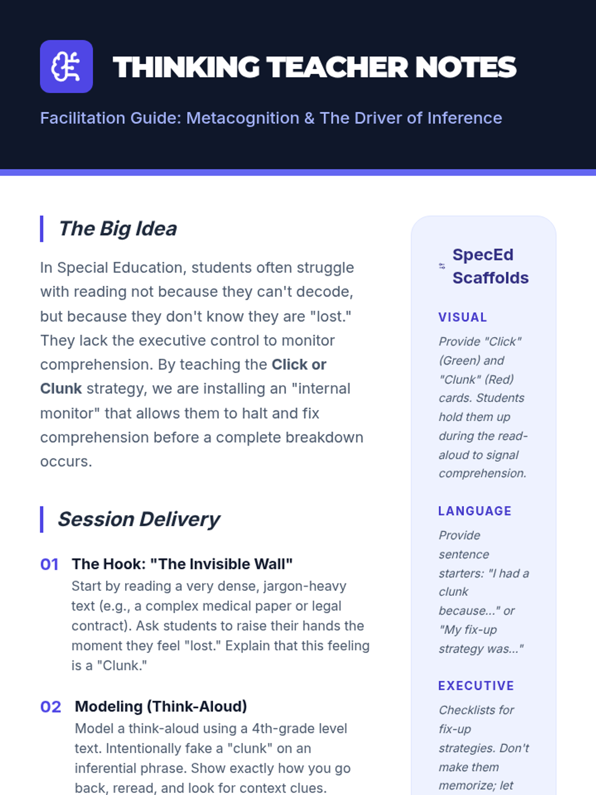This sequence explores the intersection of metacognition and cultural responsiveness in reading instruction for preservice teachers. It focuses on empowering students with disabilities to use their cultural funds of knowledge to master inferential thinking and self-regulated reading strategies.