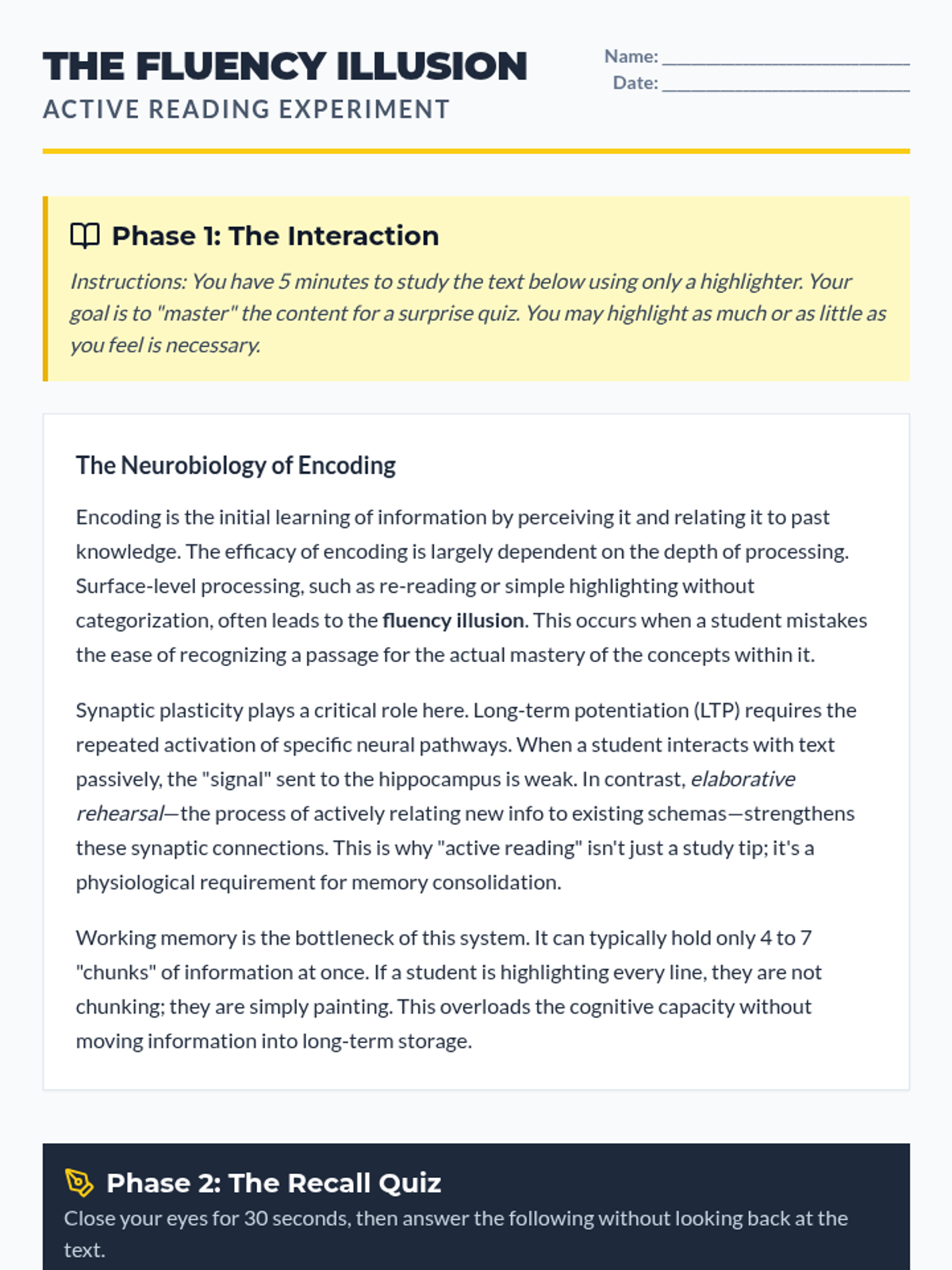 A graduate-level sequence exploring the cognitive science of text highlighting and annotation, focusing on memory, cognitive load, and evidence-based interventions for students with learning disabilities.