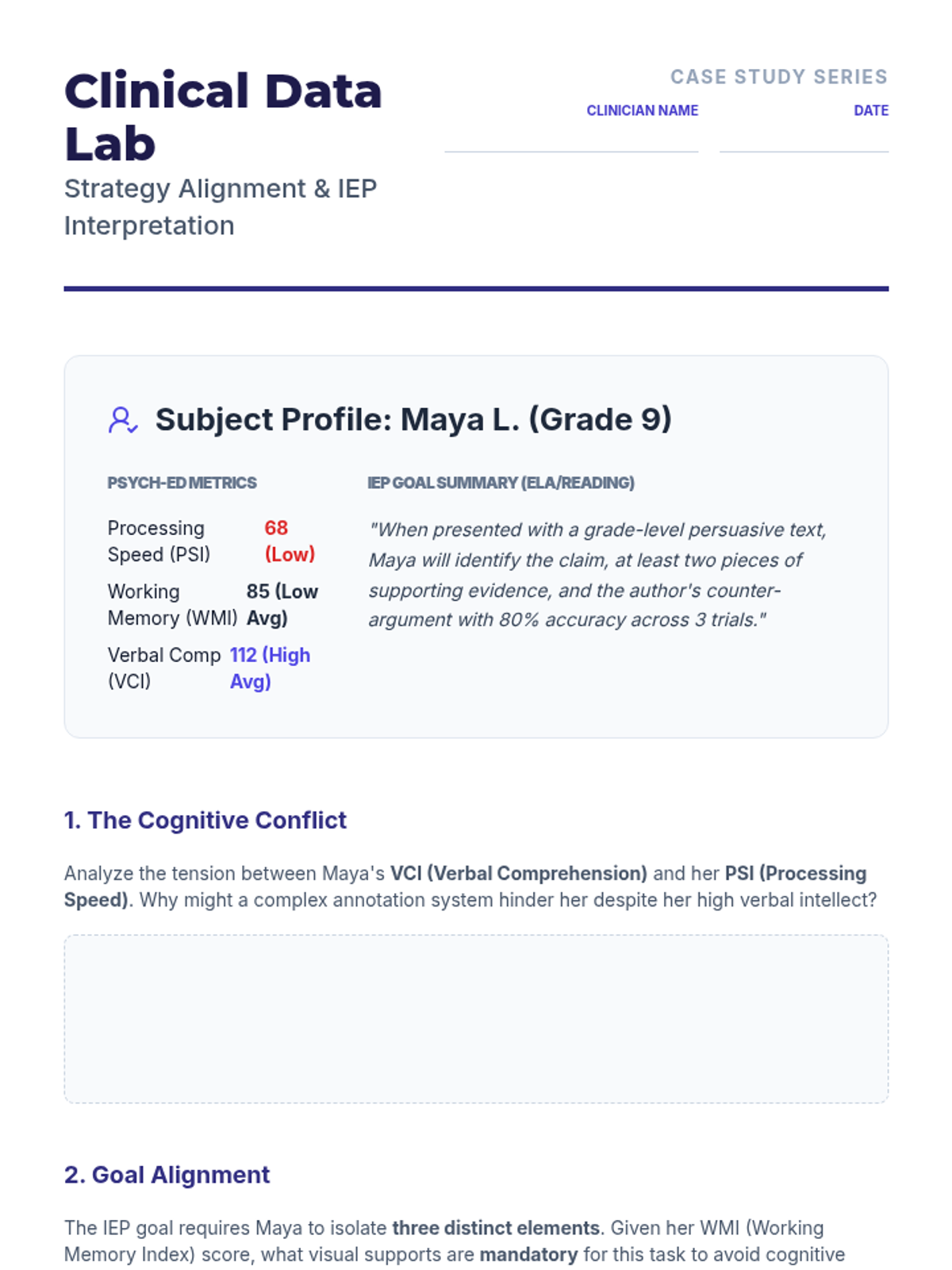 A comprehensive sequence for undergraduate special education students focused on tailoring text engagement and annotation strategies for learners with SLD, ADHD, and visual processing needs. Students analyze case studies, evaluate assistive technologies, and design bespoke support plans.