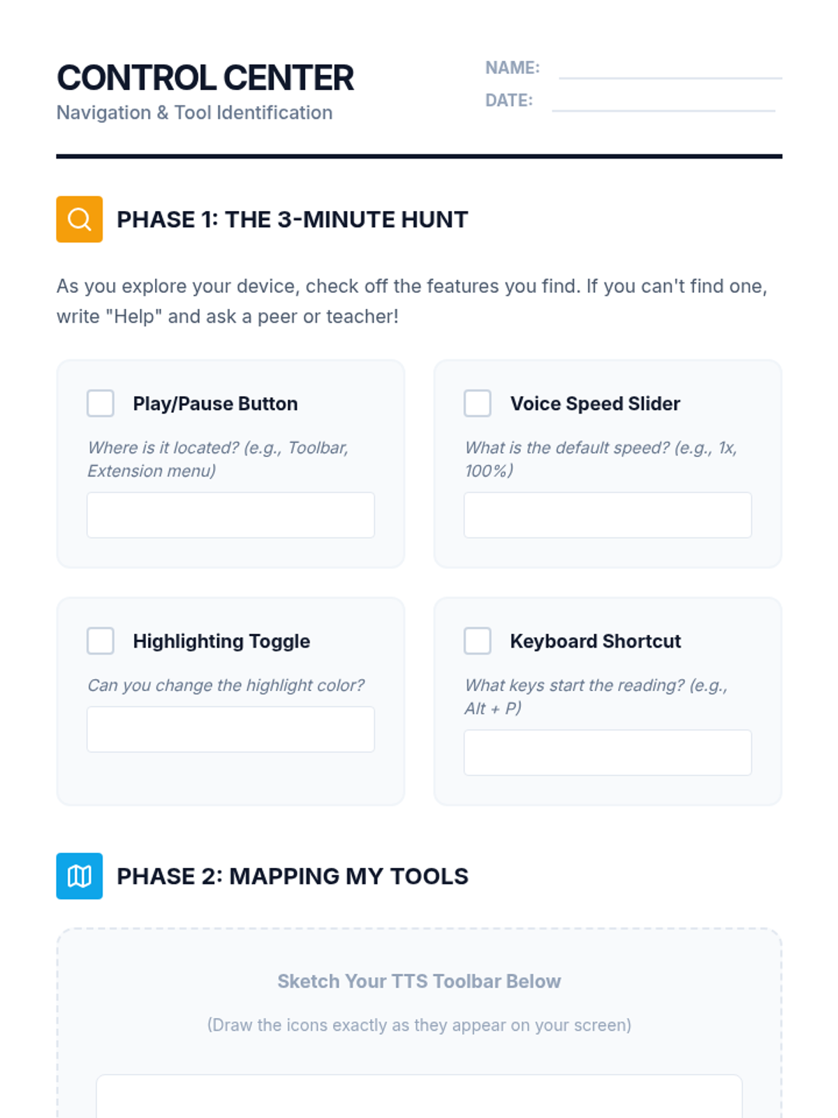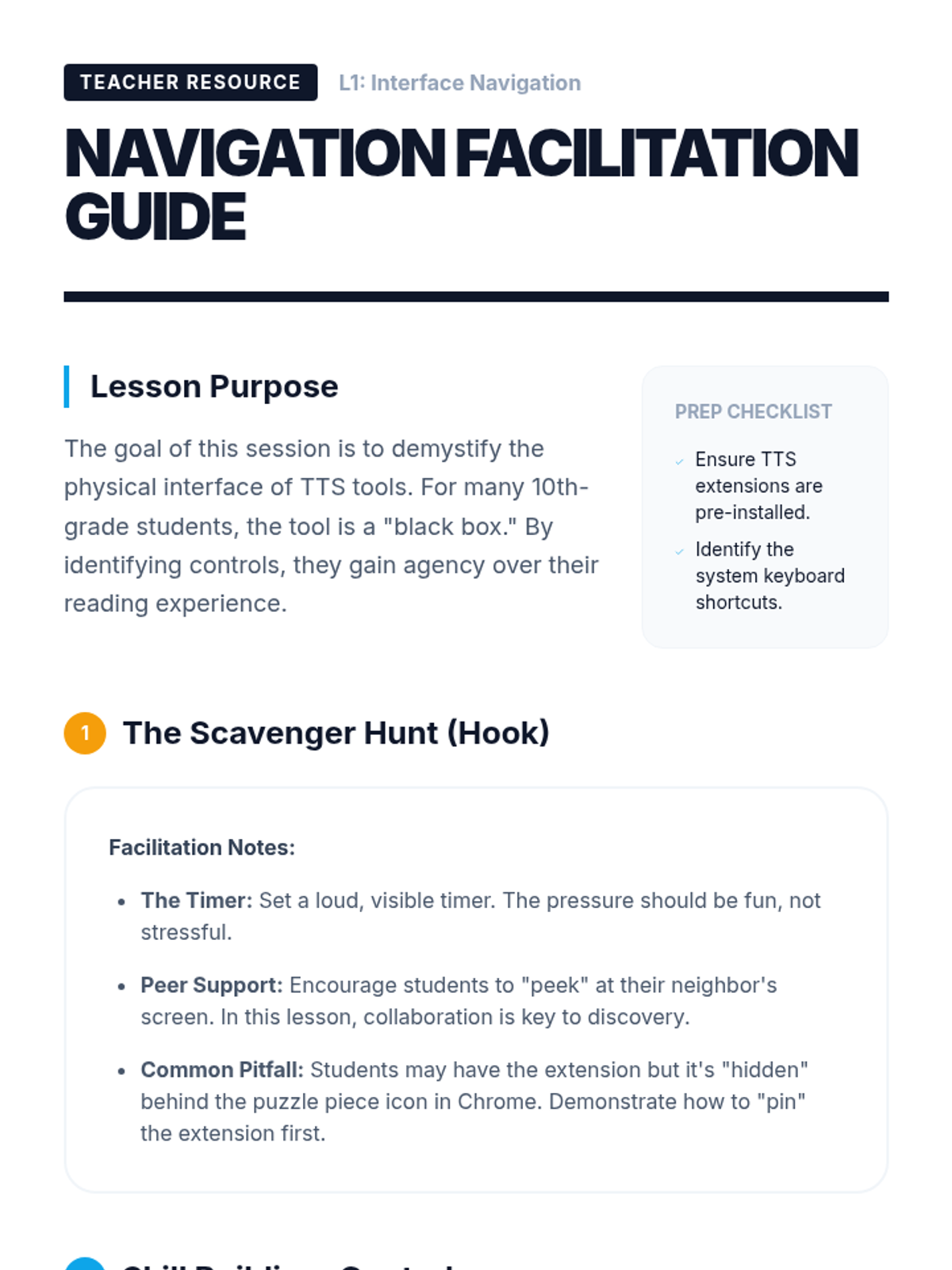 A technical workshop series designed to transition 10th-grade students from passive assistance to active mastery of Text-to-Speech technologies and OCR tools for academic independence.