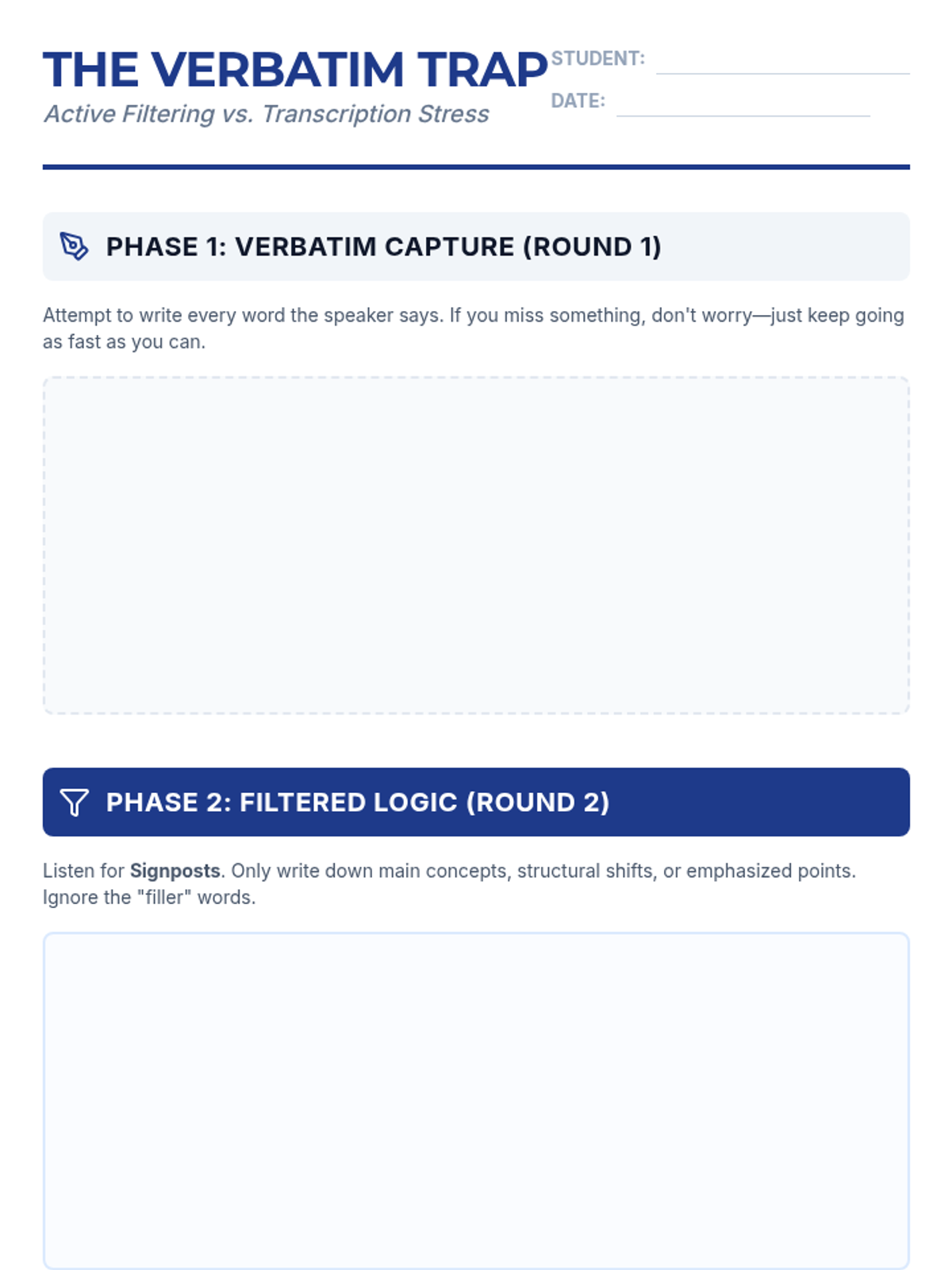 This sequence provides undergraduate students with advanced note-taking strategies designed to mitigate working memory overload. It covers cognitive load theory, the Cornell system, mind mapping, digital assistive technologies, and systematic revision cycles.