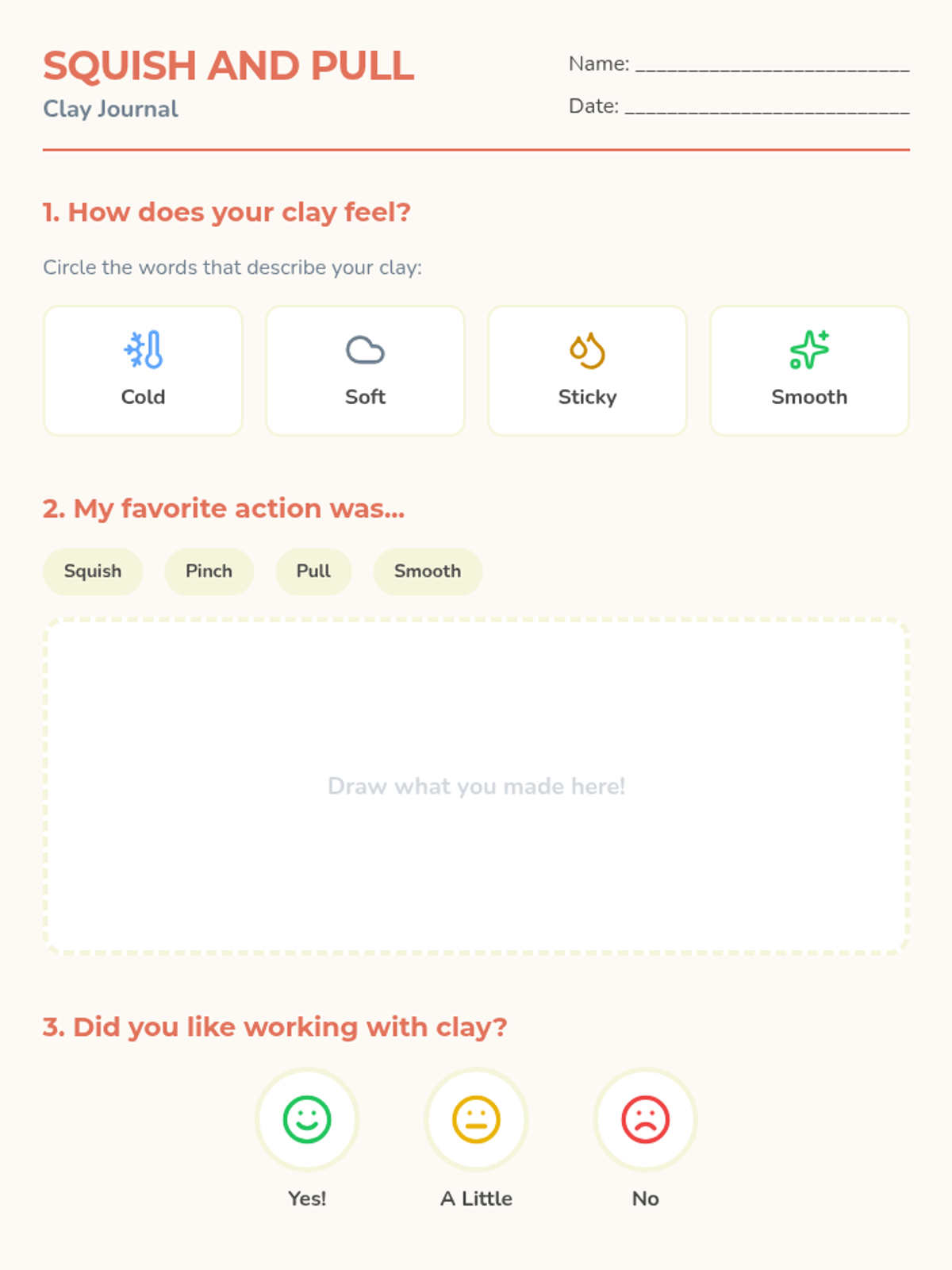 A tactile introduction to 3D art for Kindergarten, focusing on hand-building techniques like spheres, coils, and textures using clay or modeling dough.