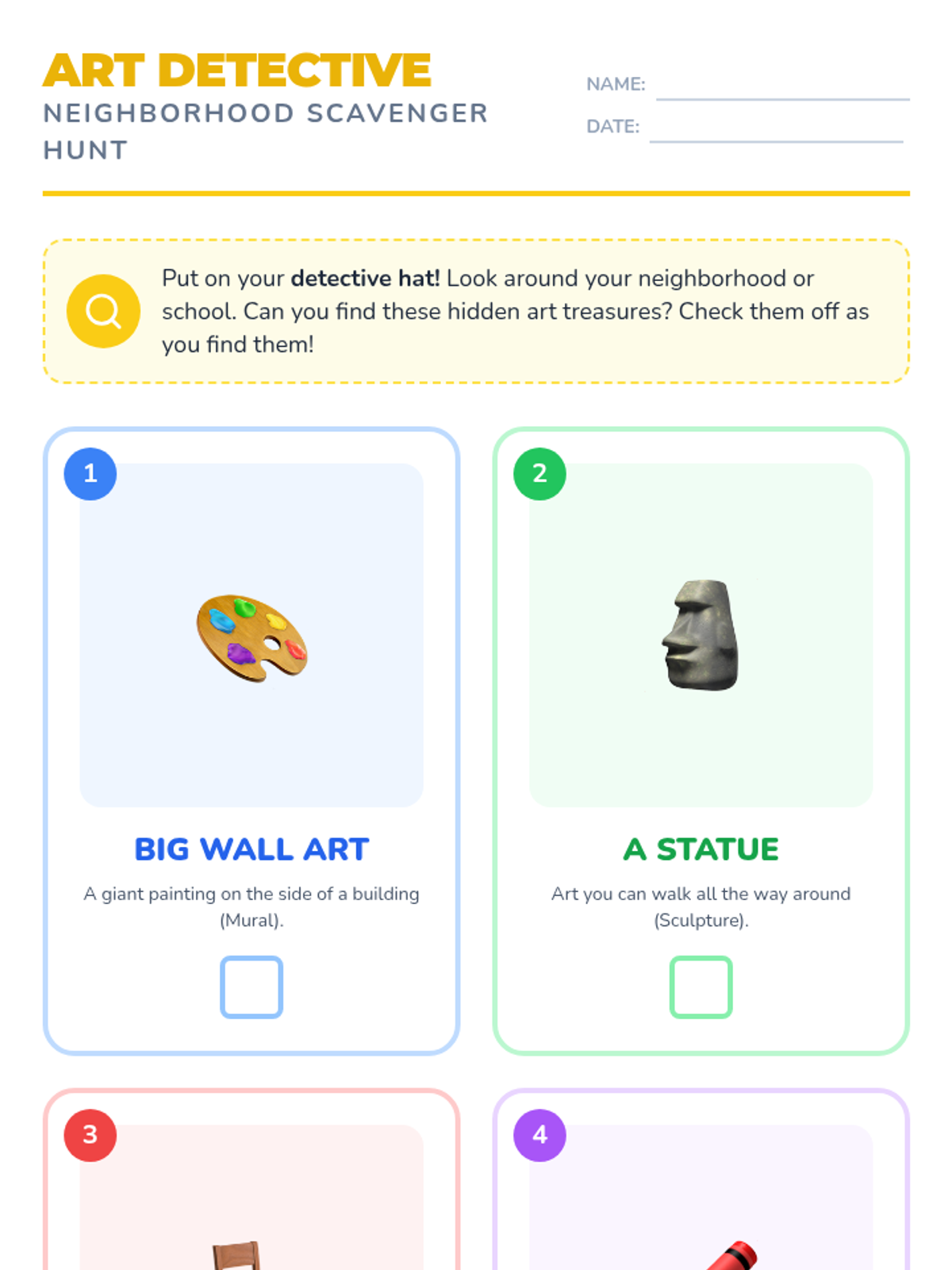 A Pre-K sequence where students explore the role of community helpers and use art to communicate gratitude, information, and identity within their neighborhood. Students create badges, thank-you cards, and signs to understand art as a tool for connection and service.