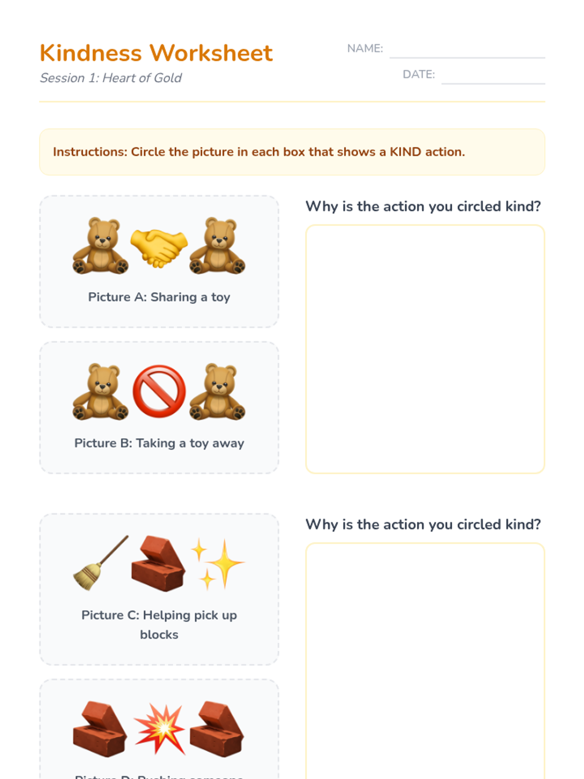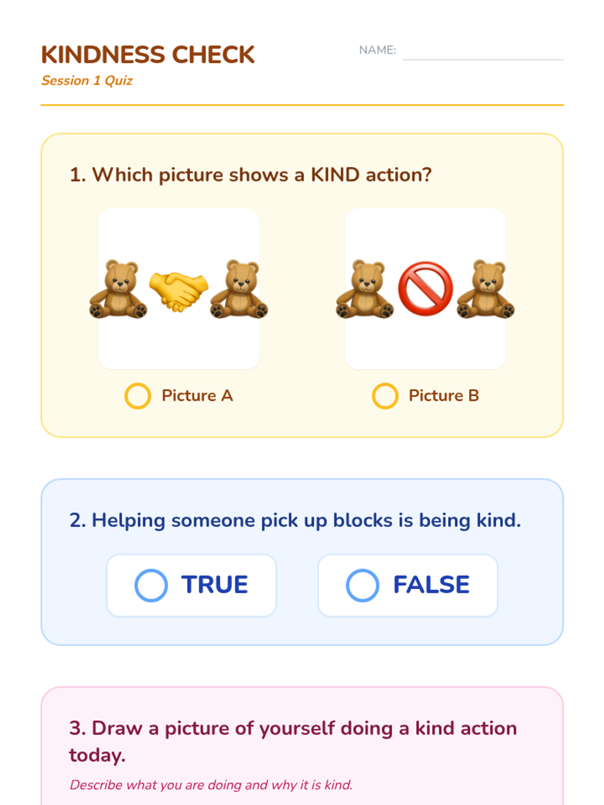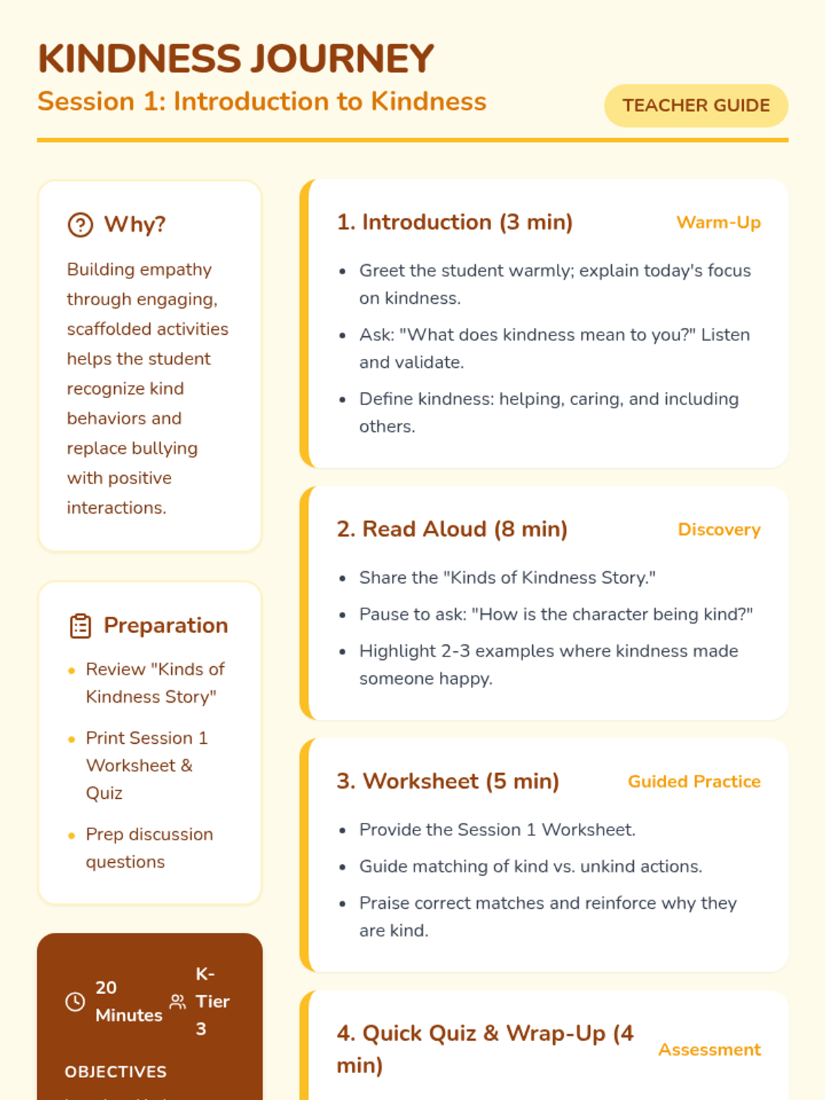 A 5-session Tier 3 intervention for kindergarten students focusing on kindness, inclusivity, and empathy. The series uses scaffolded stories and interactive worksheets to build core social-emotional skills.